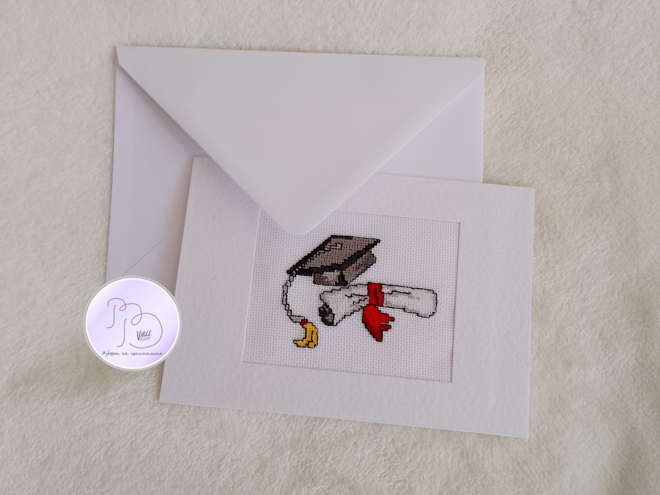Предстои Ви да гостувате на бал на абитуриент/-ка или абсолвент/-ка и планирате подаръкът да е паричен? Поставете ги в специално изработен за случая плик с ръчна бродерия. Приблизителни размери: 21х14.7см. Материал: -картон. -плат панама. -конци за бродерия. -лепило за текстил. Може с или без надпис според Вашето желание. При интерес и още разнообразни модели- разгледайте във Facebook--страницата ми- РъкоВелие Vili LL или се свържете по удобен за Вас начин с Ръковелие Vili LL. Цена: 10.23 евро/ 20.00лв.Доставка до офис на Еконт за сметка на получател. При интерес и още разнообразни модели- свържете се по удобен за Вас начин с РъкоВелие Vili LL или пишете във Viber на посочения номер. Намерете ме и във Facebook- РъкоВелие Vili LL.