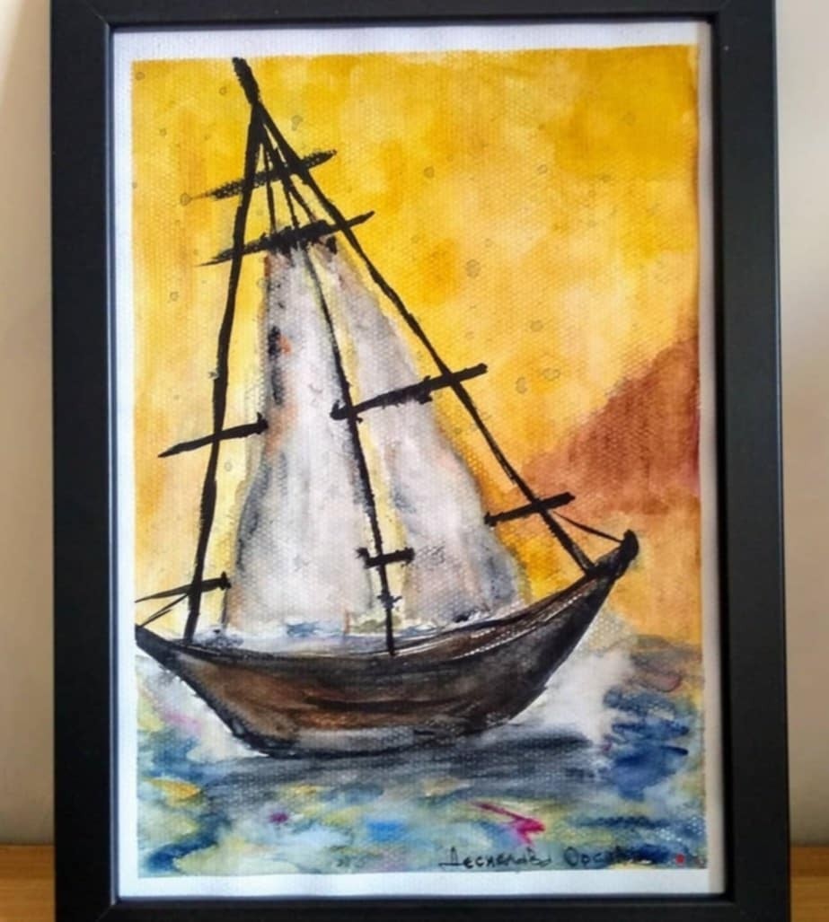 акварел "лодка-платноходка"