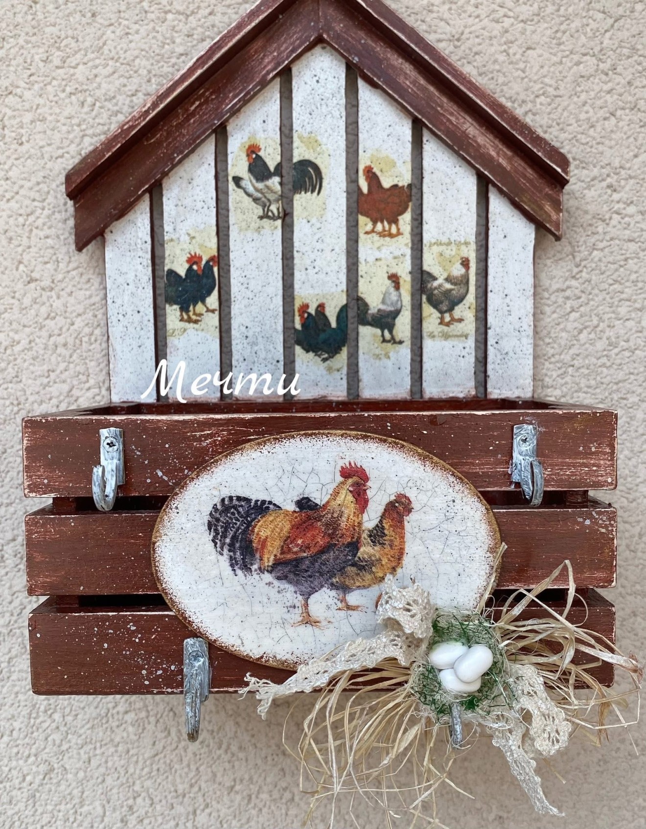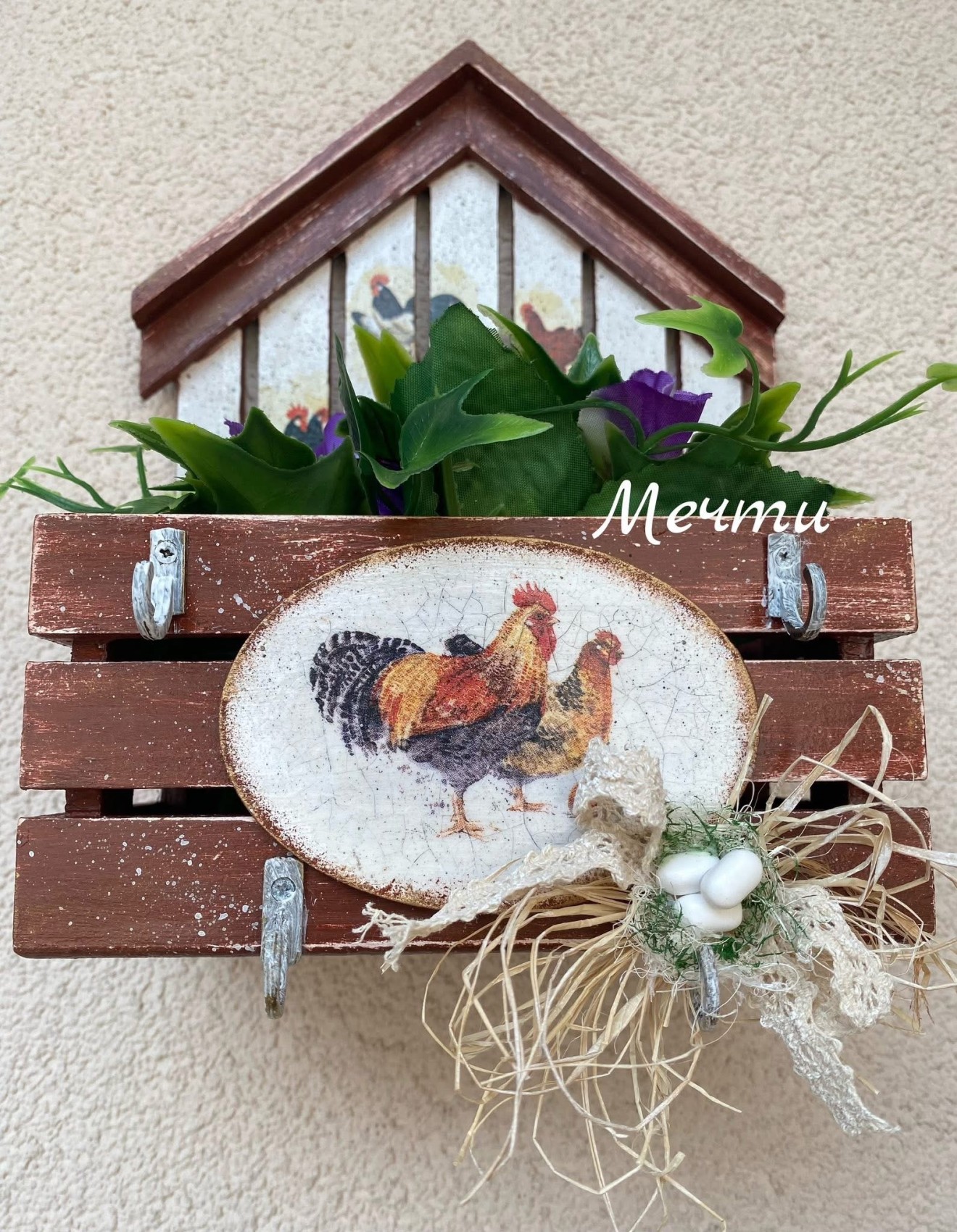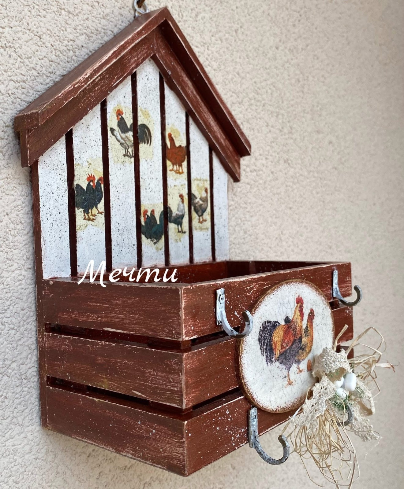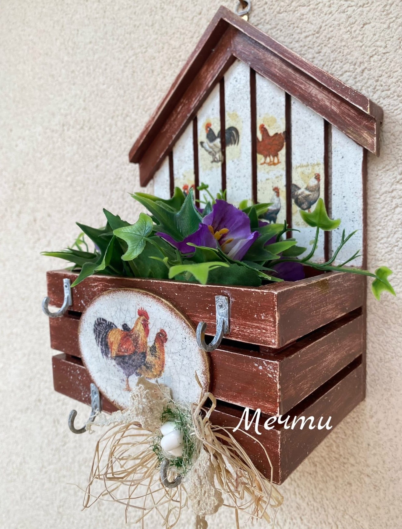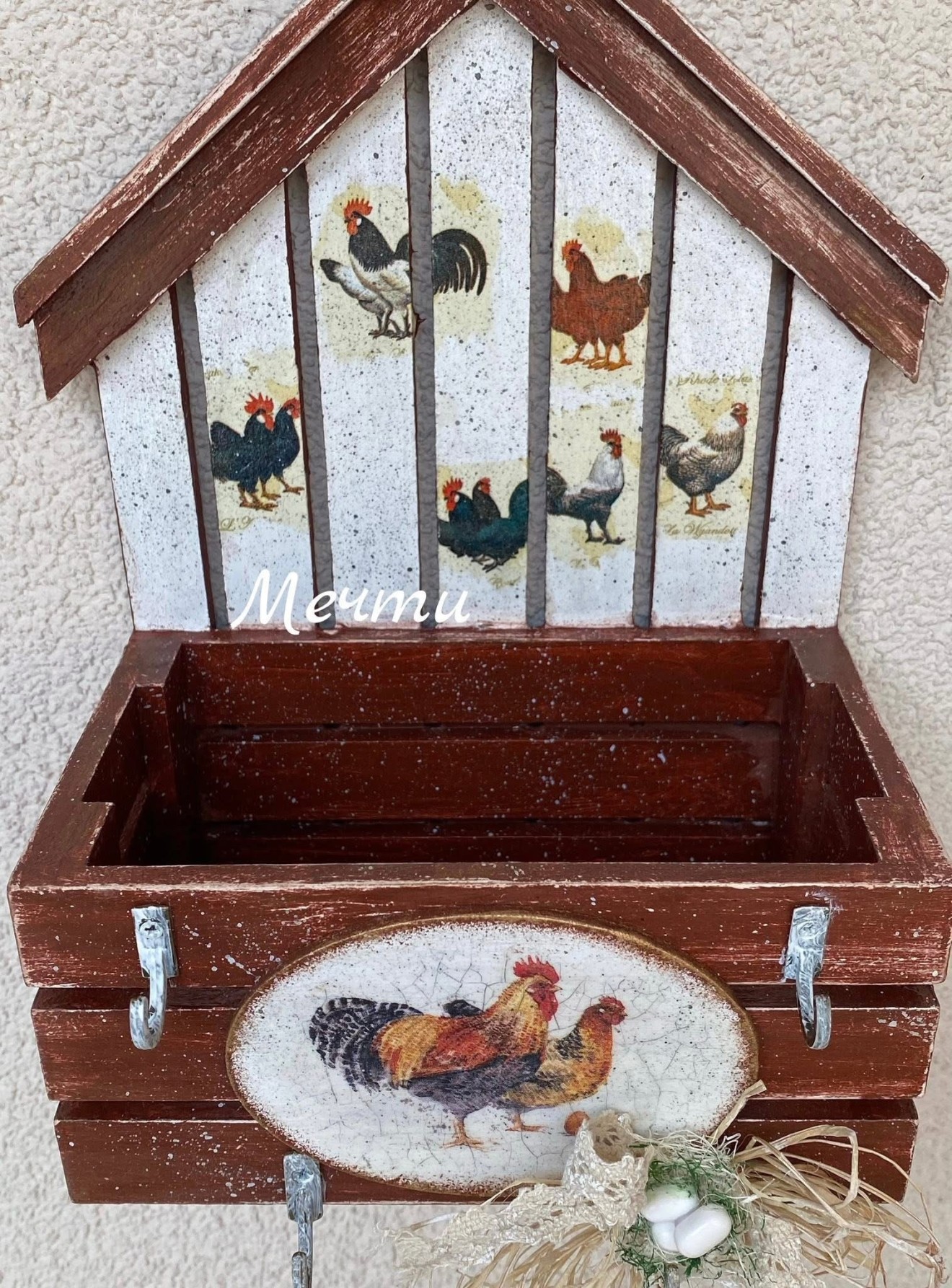 Великденска къщичка-органайзер!🥚🐓🐣🌸🐇🥕🐓🥚🥚 Къщичка от мдф, декорирана с декупаж. Може да се използва като органайзер, кашпа, за ключове… Размери; 25см./17см. #декорациязадома #Великден #handmade #ръчнаизработка #пролет #къщичка #органайзер #кашпа