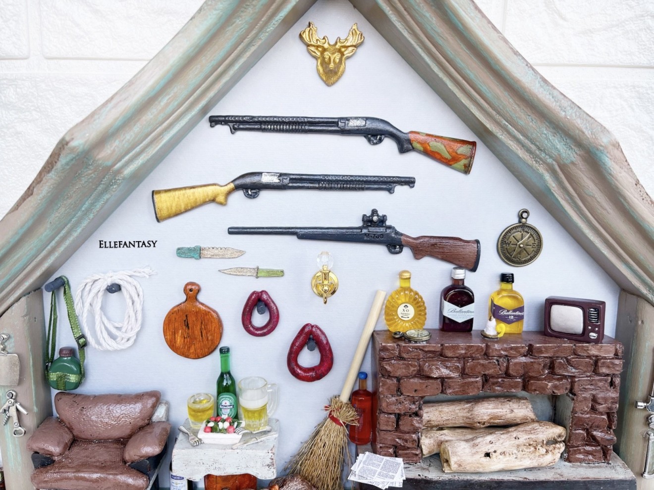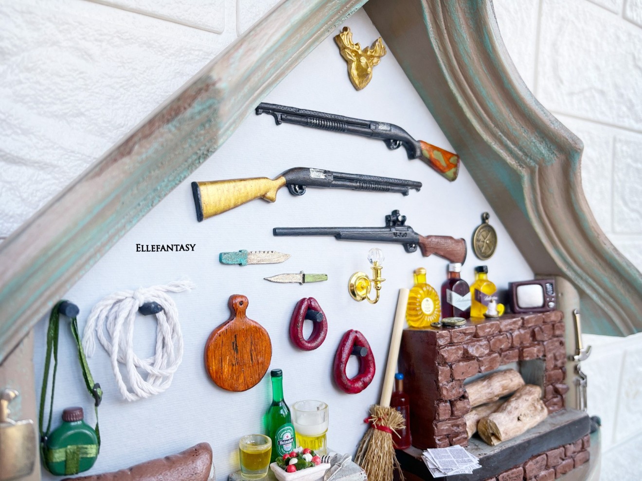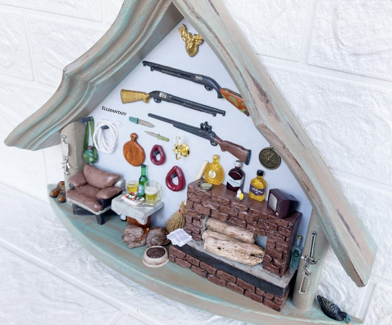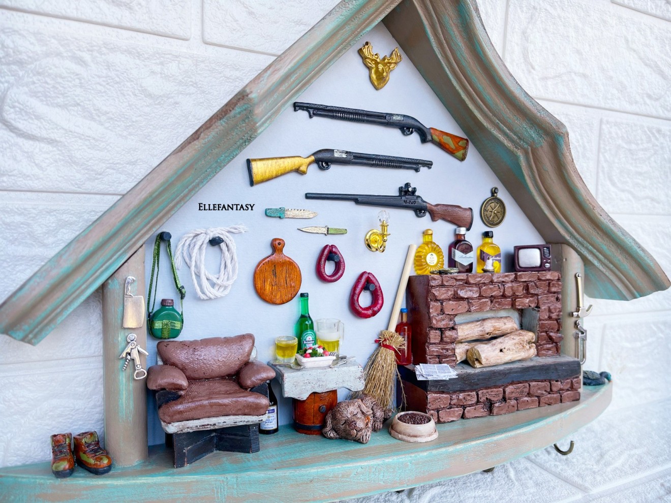 🌷Налична🌷 🍀 Хижата ☘️ Една персонализирана къща, която е налична. Тя е подоходяща за ловна хижа, ловджия. На летвата, на която са кукичките изписвам кратък текст. -Дървената рамка е изцяло ръчно обработена, изкуствено състарена. Размер - от върха на къщата до края на кукичките 30 см. Основата на която са кукичките е 39см. Кукичките са 5 на бр. ❣️❣️Цена 66€/ 129,08лв. - Изпращам само с Еконт. ‼️Работя с капаро.