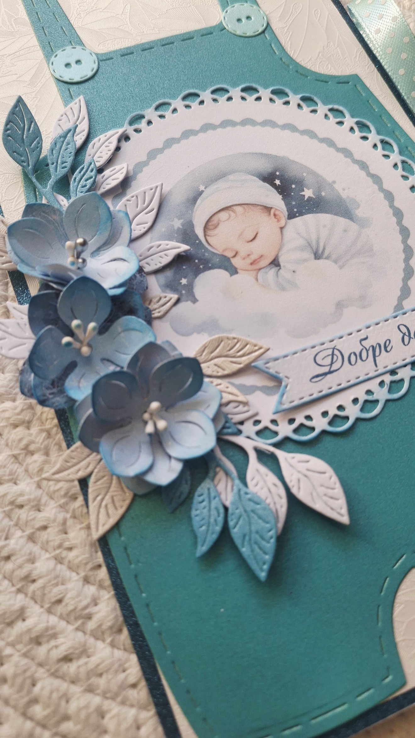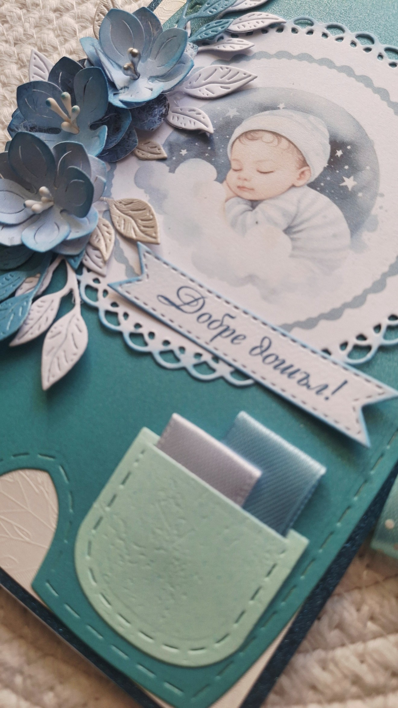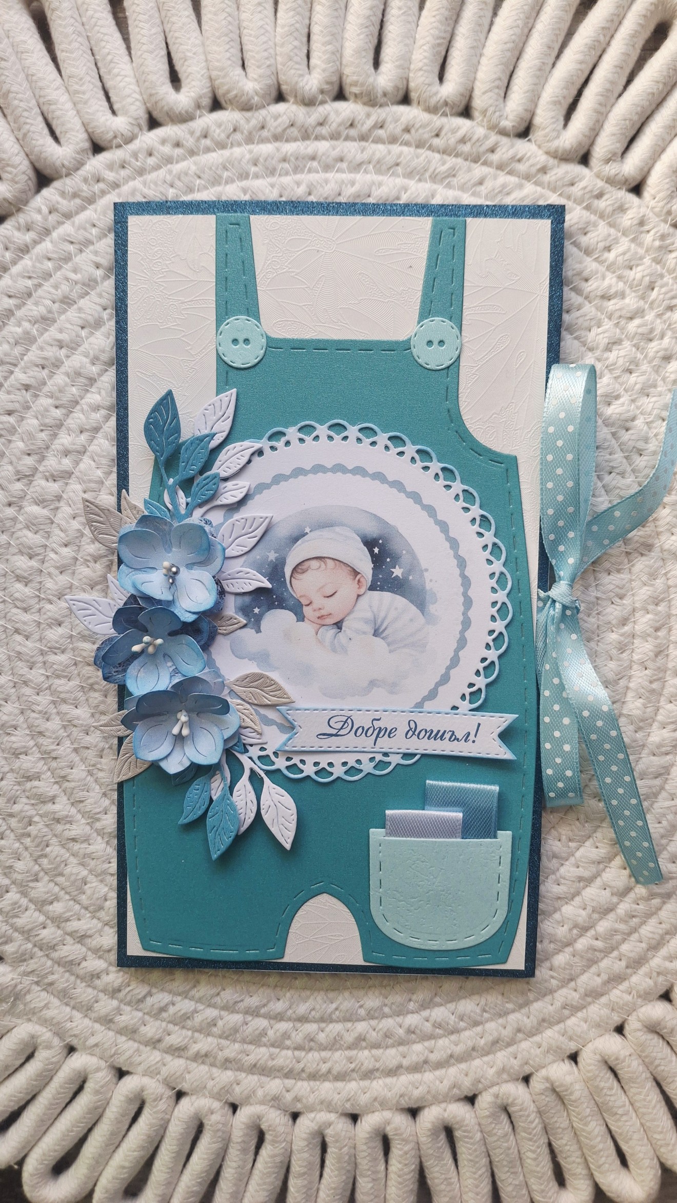 Първите моменти заслужават да бъдат запомнени по красив начин. Тази ръчно изработена картичка „Добре дошло, бебе“ е създадена с много нежност и внимание към детайла. Подходяща е за посрещане на новородено и като мил жест към щастливите родители. Картичката носи усещане за топлина, радост и ново начало. Вътре има място за лично пожелание, с което да направите подаръка още по-специален. ✔ Ръчна изработка ✔ Подходяща за новородено бебе ✔ Място за пожелание Един малък спомен за началото на най-красивото приключение.