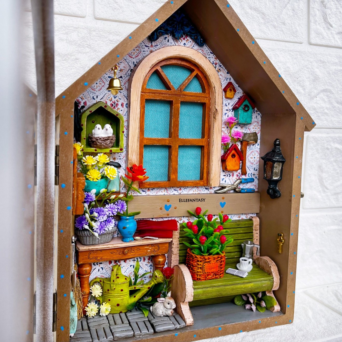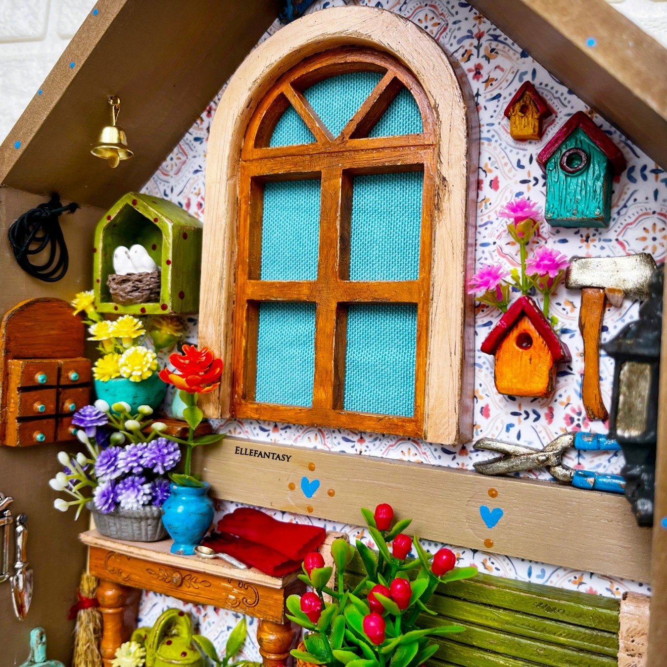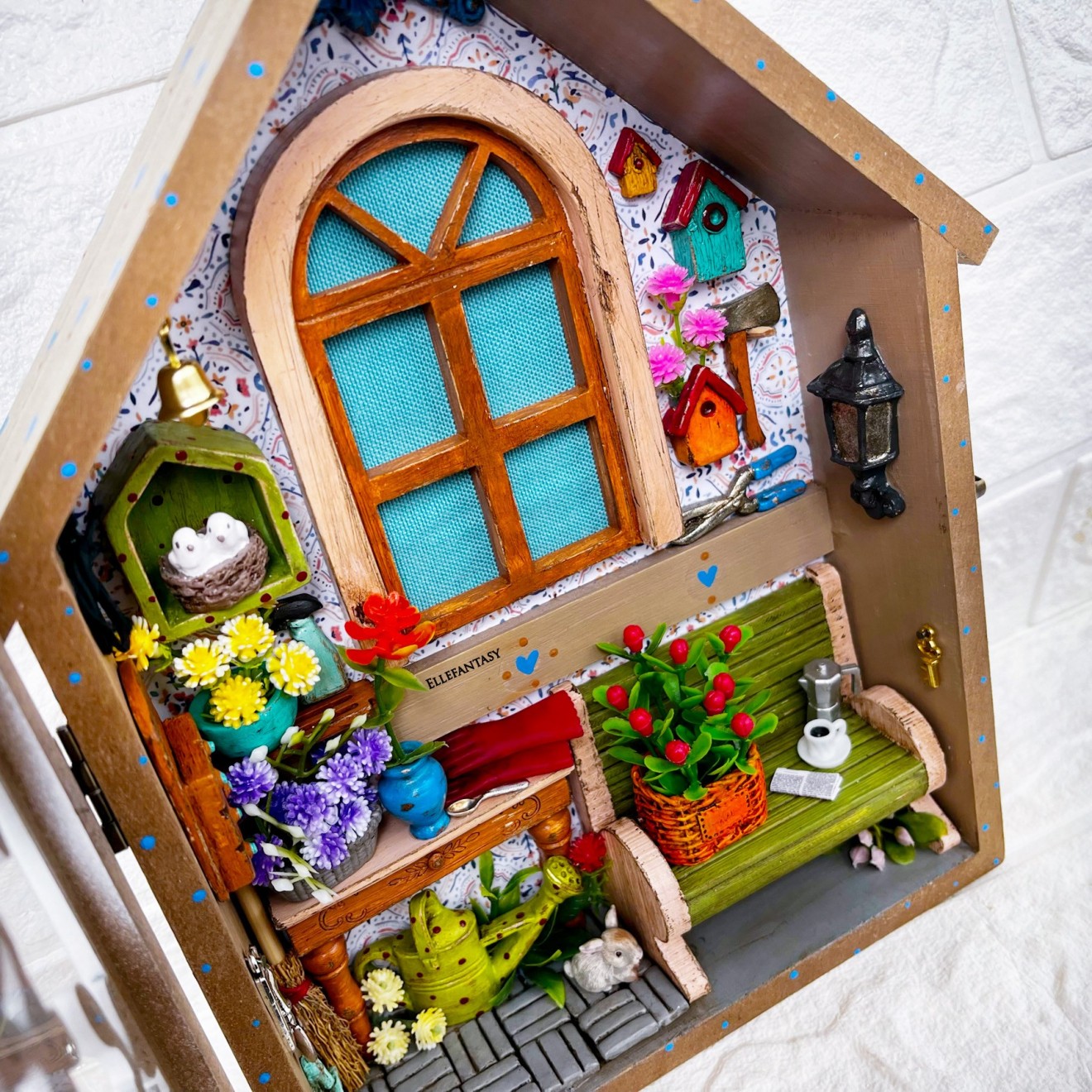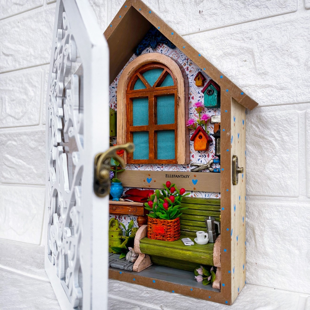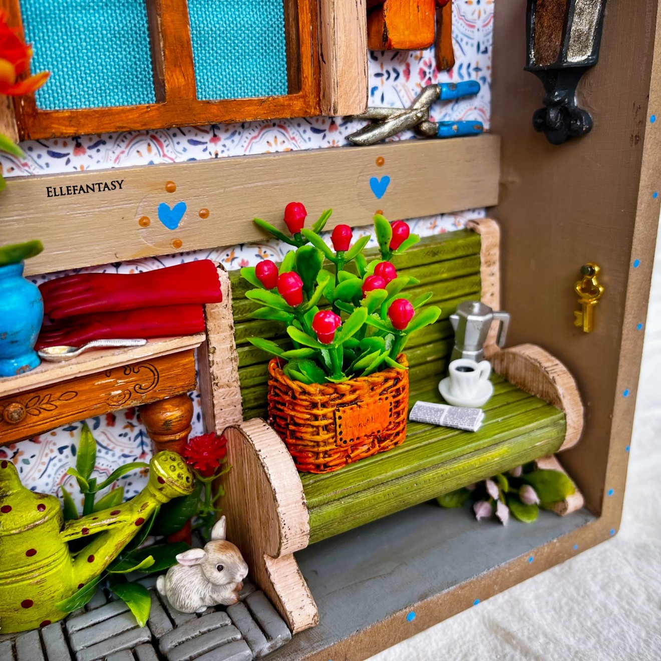 Едно уникално, малко кътче... Дали ще е Вашето?! Много писах и много трих...не искам да ви занимавам с излишна информация, но наистина ми се искаше да опиша как стигнах до тук... Какво почувствах и колко стаи видях, когато погледнах тази кутия в магазина...Вече знаех през какви сатъпки и етапи трябва да премина, за да изглежда тя по начина по който я виждате сега :) Тя бе закачалка за ключове, на която буквално трябваше да кътря и стържа с ножче летвкичките, и после да шкуря до перфектна повърхност, за да мога да започна работа в нея, но усилията си заслужаваха напълно. Изработката съм направила в кутия от МДФ имитираща дърво със стъклен капак. На нея Не може да се поставят кукички. Размери 25,7/20 см. ❣️Цена 47€/ 91,92лв.📌Тези стаи изпращам само с Еконт до офис или личен адрес. 📍Скъпи хора, моля запознайте се с начина ми на работа преди поръчка. Работя с капаро.
