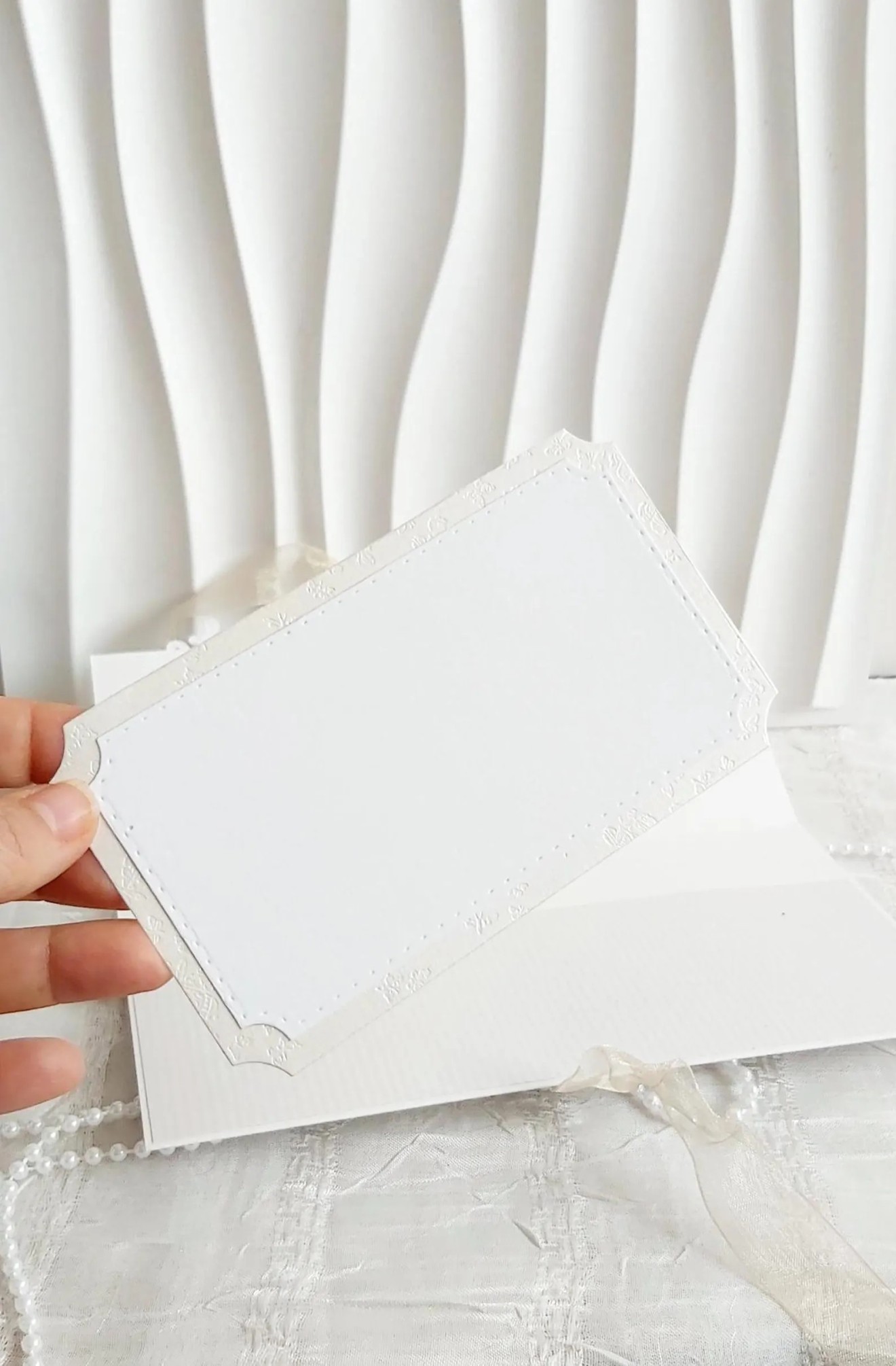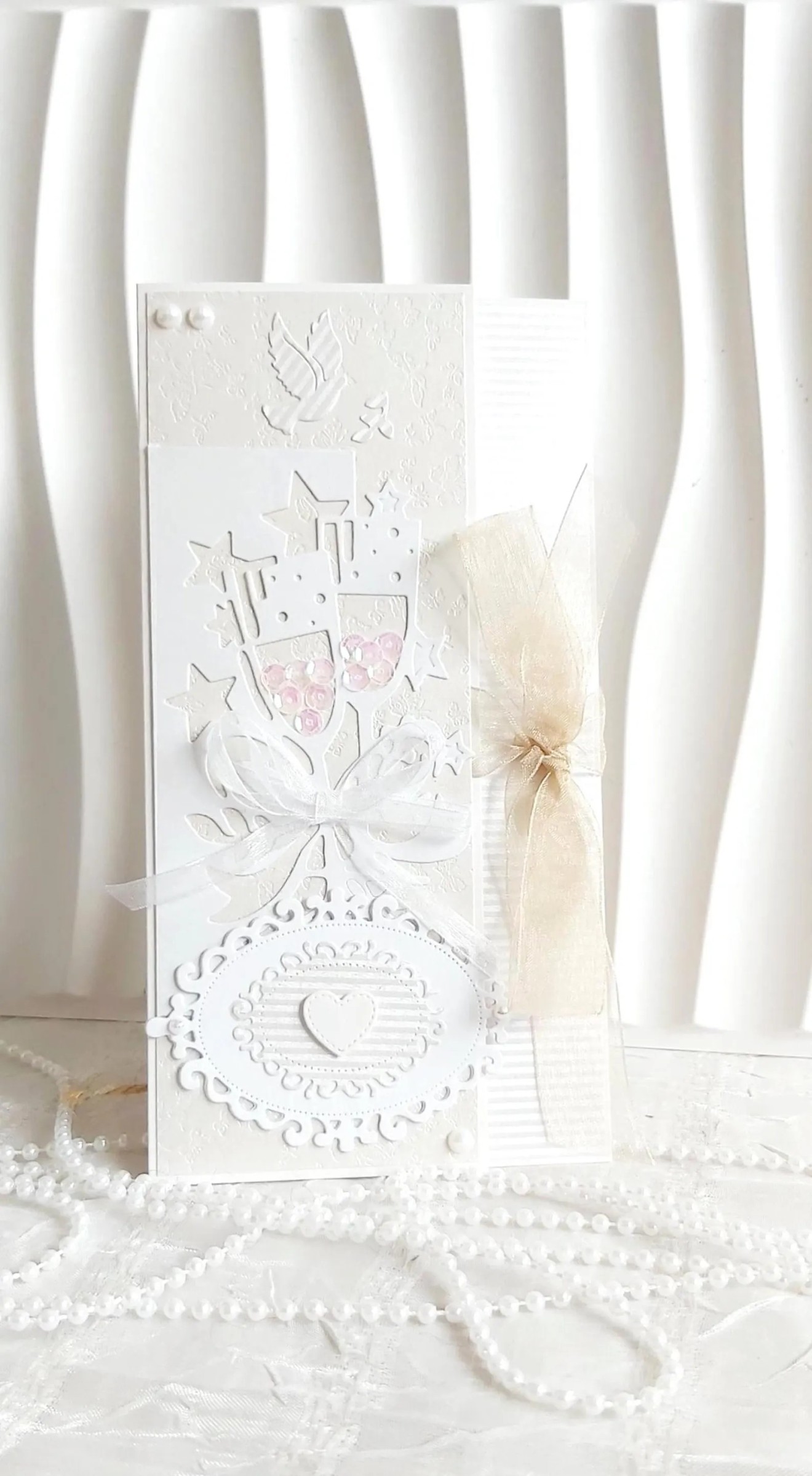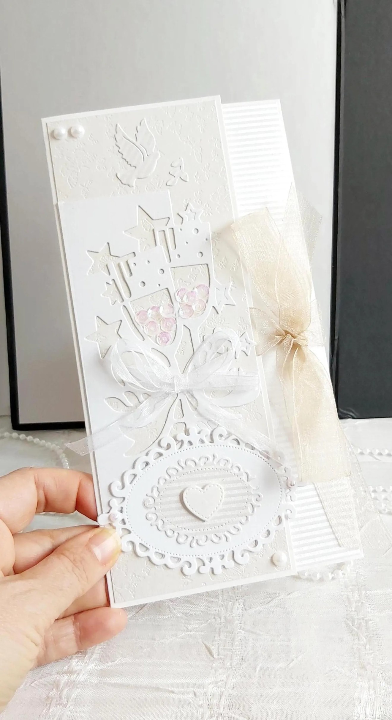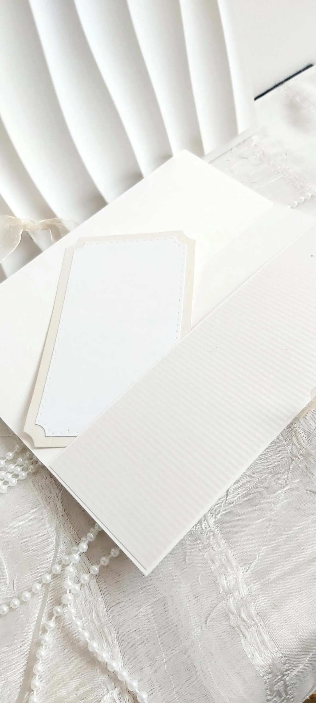 Изчистен, елегантен сватбен плик и картичка в едно за поднасяне на паричен подарък, билети, ваучери и др. С допълнителна мини картичка за пожелания. В бяло и екрю. Размер 11/21 см Изпращане с наложен платеж до офис на Еконт/Спиди