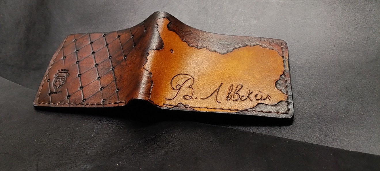 Портмонета с гравюра Изработени изцяло на ръка от естествена кожа,зашити с ръчен шев.