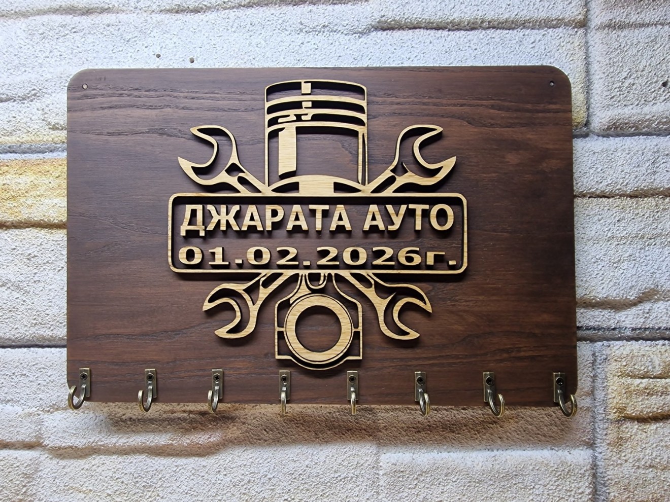 ✴️Безплатно специално за вас можем да изготвим дигитален проект за да видите как би изглеждала. ✴️стойка за ключове с която може да организирате по лесно ключовете на вашите клиенти. ✴️Всяка една стойка за ключове е уникална, защото се изработва специално за всеки един клиент. ✴️Персонализирана с ваше лого , текс , имена на фирма , името на майстора , име автосервиз ✴️Идеалане помощник на всеки които предлага услуги свързани със съхранение на ключове. ✴️Страхотен помощник за Автосервизи , Хотели , Вулканизатор , Автомивка , Фитнеси и други. ✴️Поставката за ключове по желание на клиента, могат да бъдат добавяни различни декоративни елементи. ✴️Стойката е с отвори за монтаж на стена ✴️Изработена с огромно внимание и според вашите изисквания! ✴️Време за изработка: 2 дни. 📌Размери: ▶️Дължина: 30 сантиметра ▶️Широчина: 20 сантиметра ▶️8 броя кукички 📌Размери: ▶️Дължина: 30 сантиметра ▶️Широчина: 20 сантиметра ▶️12 броя кукички ▶️Доплащане 6 евро