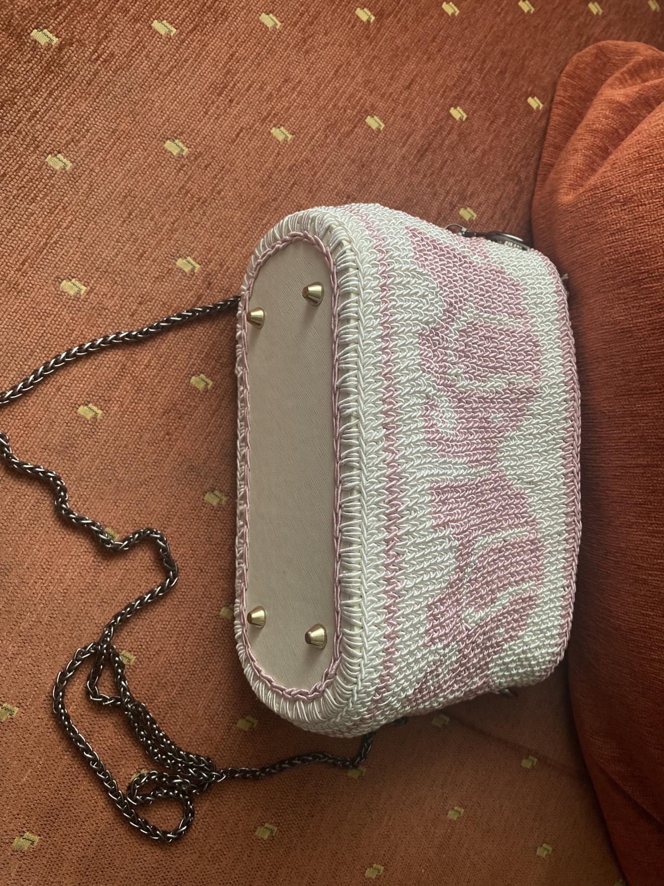 Чанта с кожено овално дъно 22/12см. Розови слончета за разкош Слончетата са символ на мъдрост Чантата е с размери 25/16 Закопчаване с магнитче.