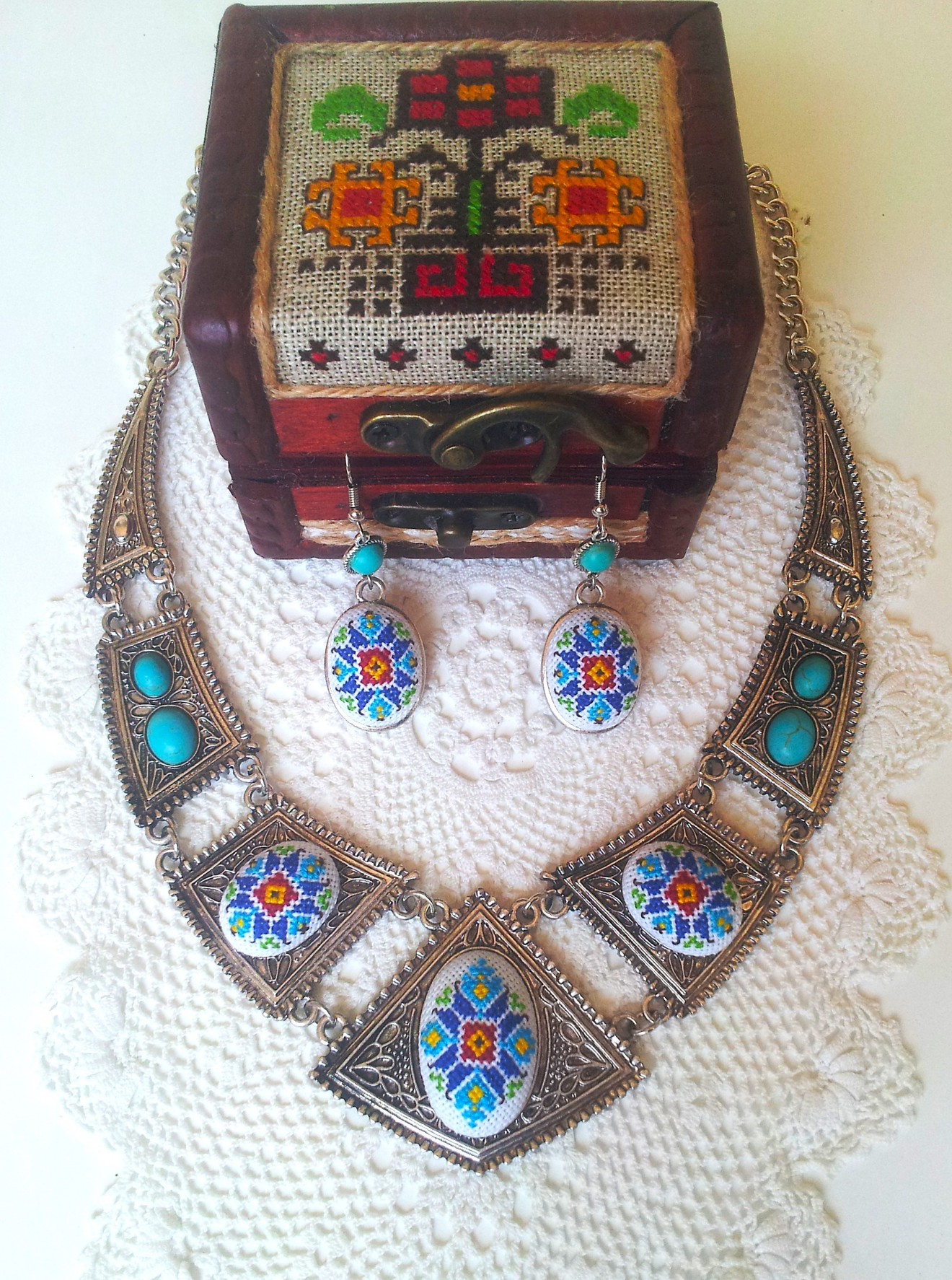 Комплект бижута с ръчно бродирани шевици