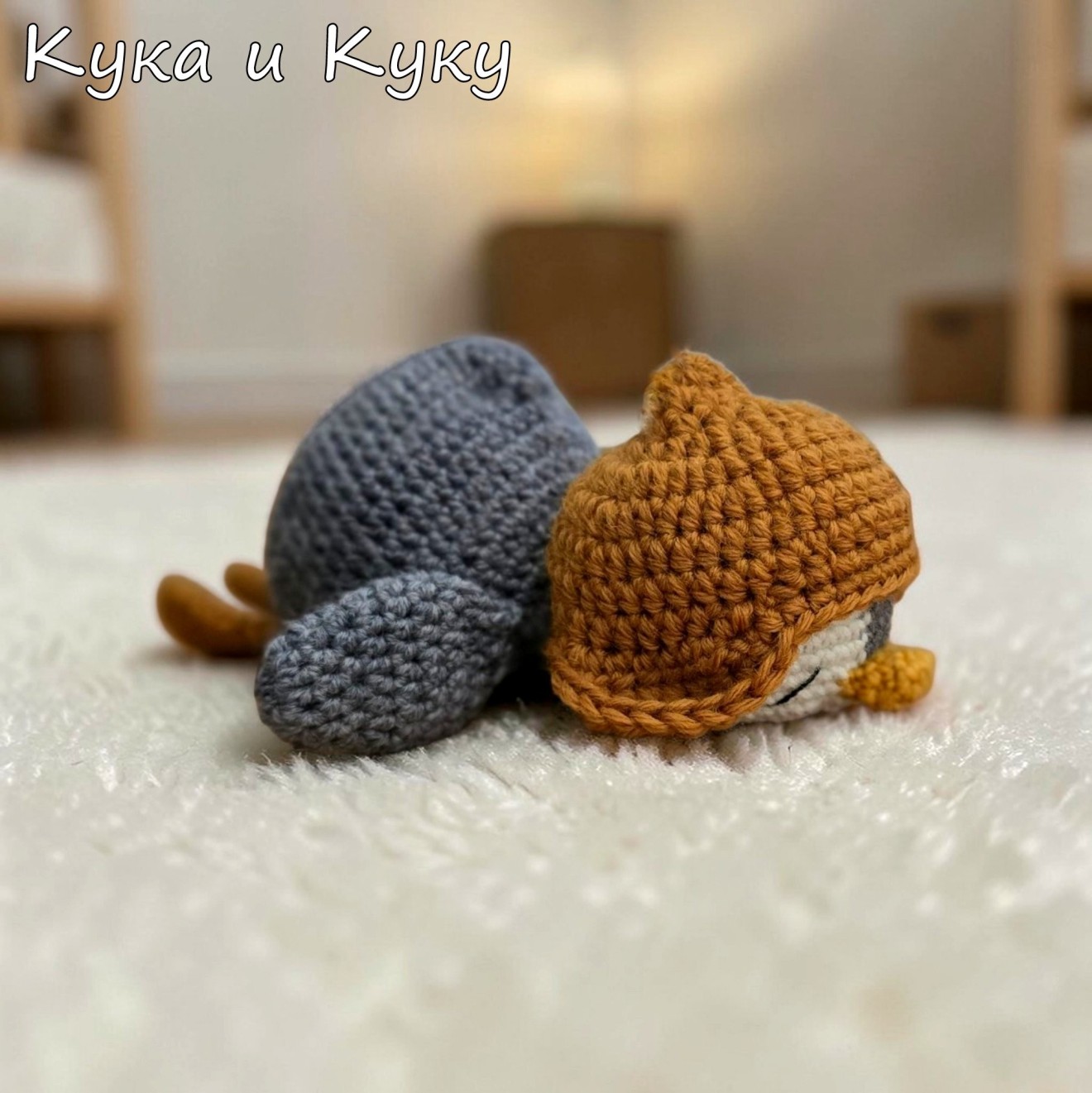 Спящо пингвинче с дължина 12 см. Изплетено от нежна мериносова прежда. 🧶Изработено от мен, по дизайн на Neinei.