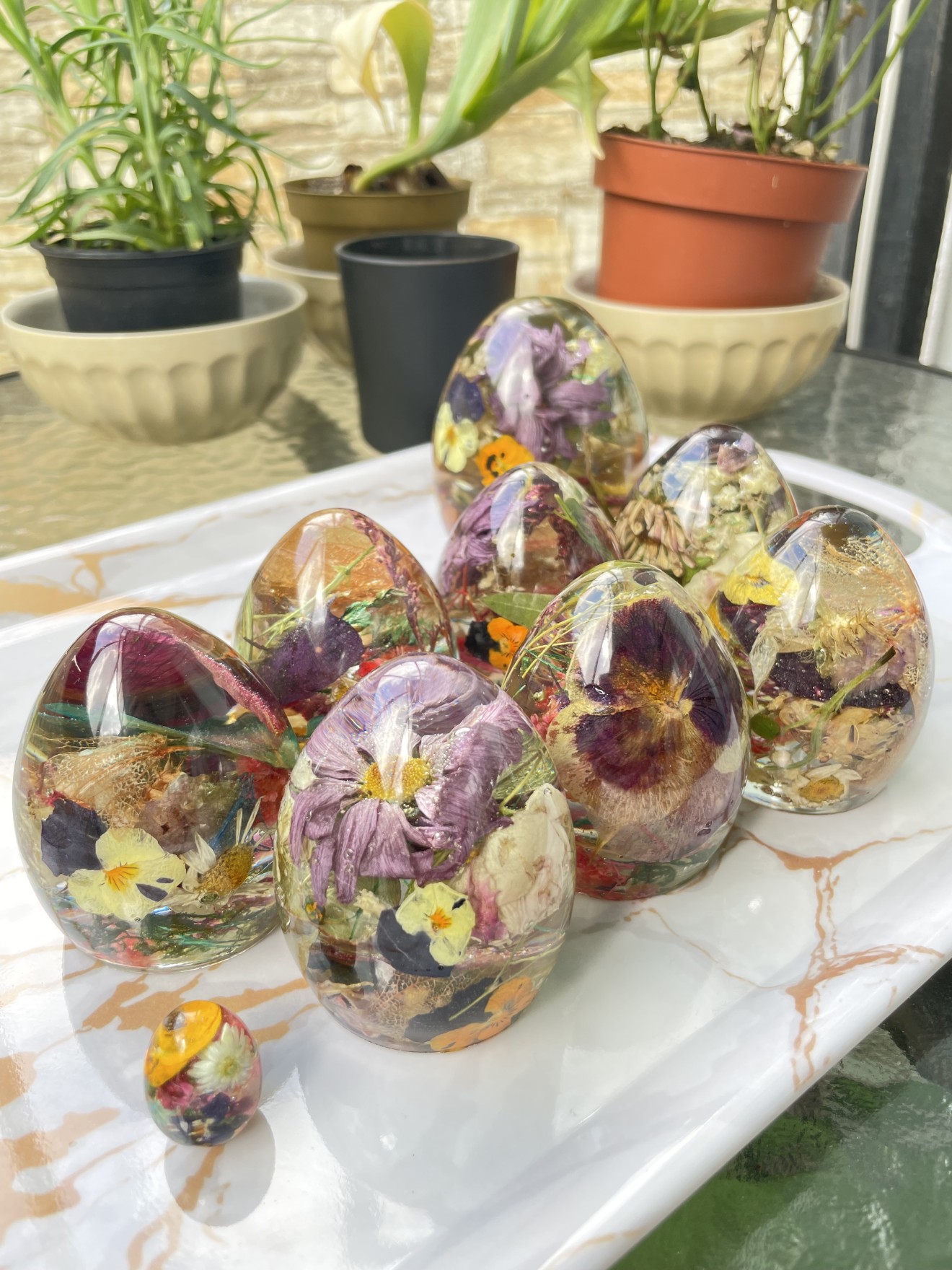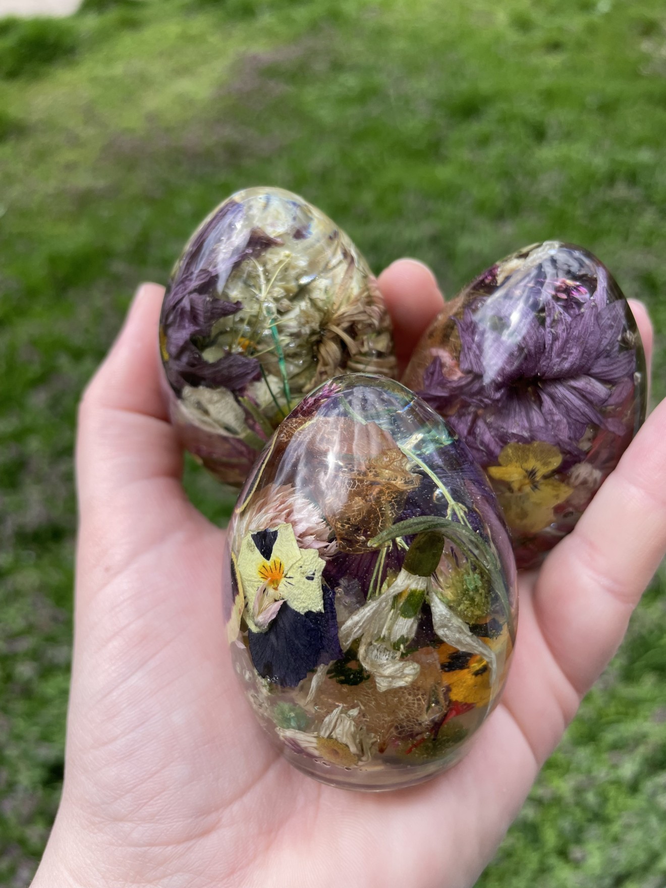 Ръчно изработени яйца от епоксидна смола, със съхранени естествени цветя. 🌸🌼🍀
