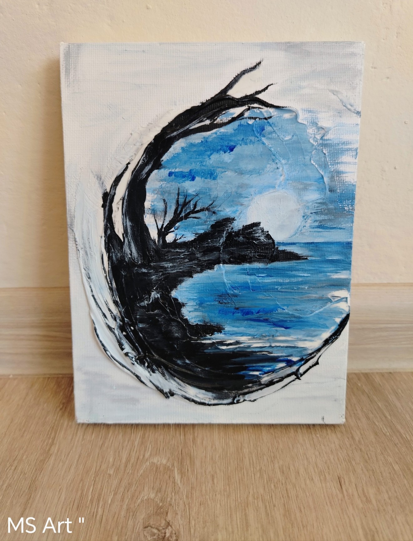 Прегръдката на нощта " #Artpainting #acril #Релефна #картина с #акрил върху платно с подрамка с размери 15/20 см.