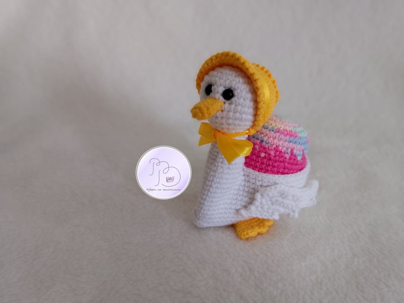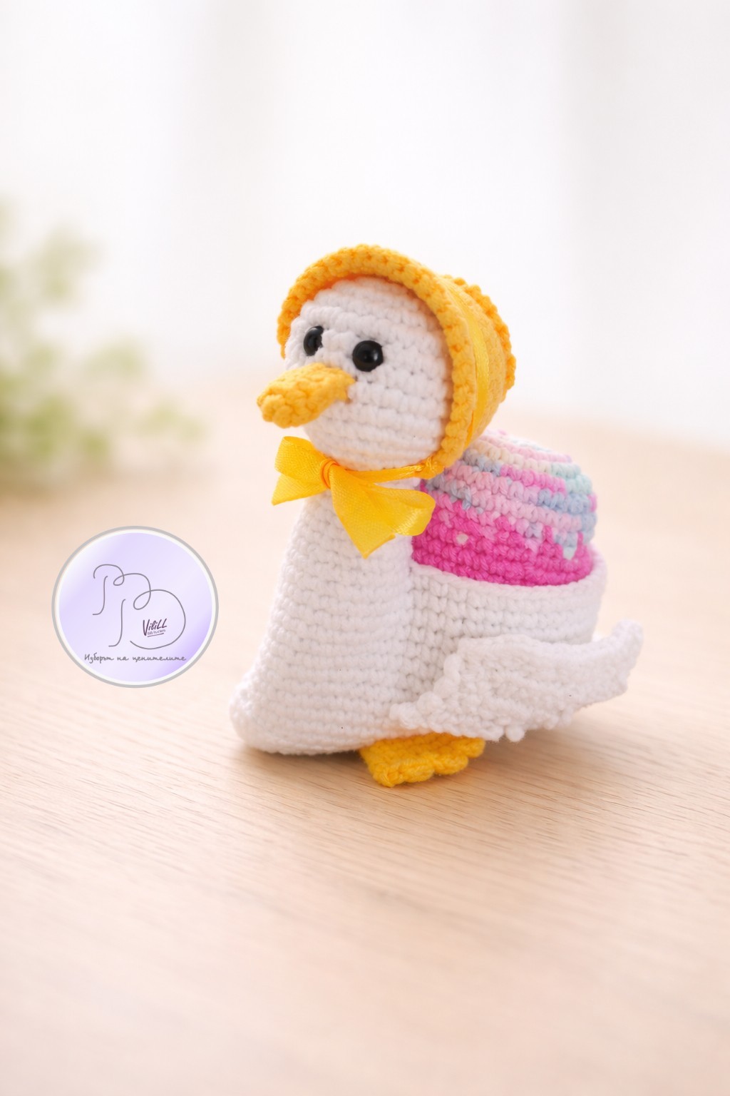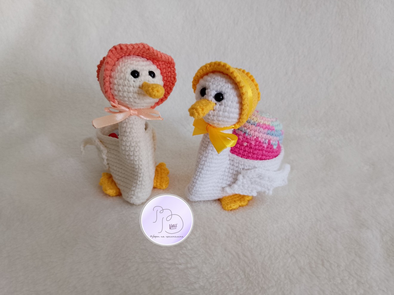 Великден с усмивка… И малко вълшебство. Не масово. Не безлично, а истинска емоция. Чаровните патици, които носят усещане за уют, грижа и онова детско вълнение, което прави празниците истински специални. А най-сладката част? Освен, че са очарователна украса, в тях има и място да се скрие малка изненада. - Създадени да усмихват. -Перфектна идея за подарък на дете или любим човек. - Красив акцент за празничната декорация. -Малък жест, който остава спомен. Приблизителни размери: -дължина- около 9 см. -височина-10см, с шапката- около 11-12см. Материал: -прежда- смес от акрил и памук. -силиконов пълнеж. -безопасни пластмасови очички на винтче. -сатенена панделка. Цена: 1).13 евро/25.43лв. и се отнася за наличната патица+яйце (шапката и яйцето може да се изработят и в друг цвят). 2).по отделно: -11.00евро/21.51лв. патица. -3.00евро/5.87лв.-яйце. Доставка до офис на Еконт за сметка на получател.
