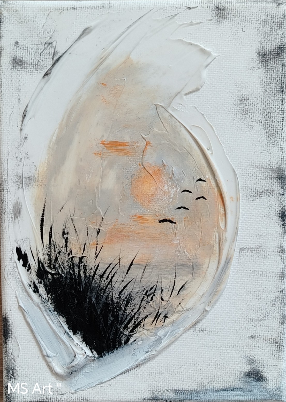 Вятър в тръстиките " #Artpainting #acril #Релефна #картина рисувана с #акрил върху платно с подрамка с размери 13/18 см.