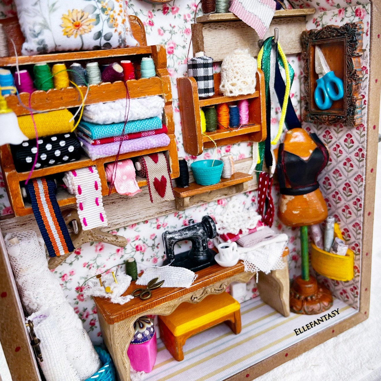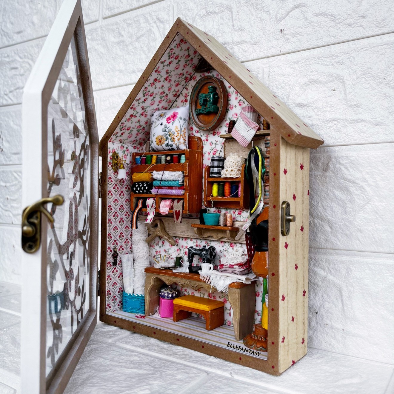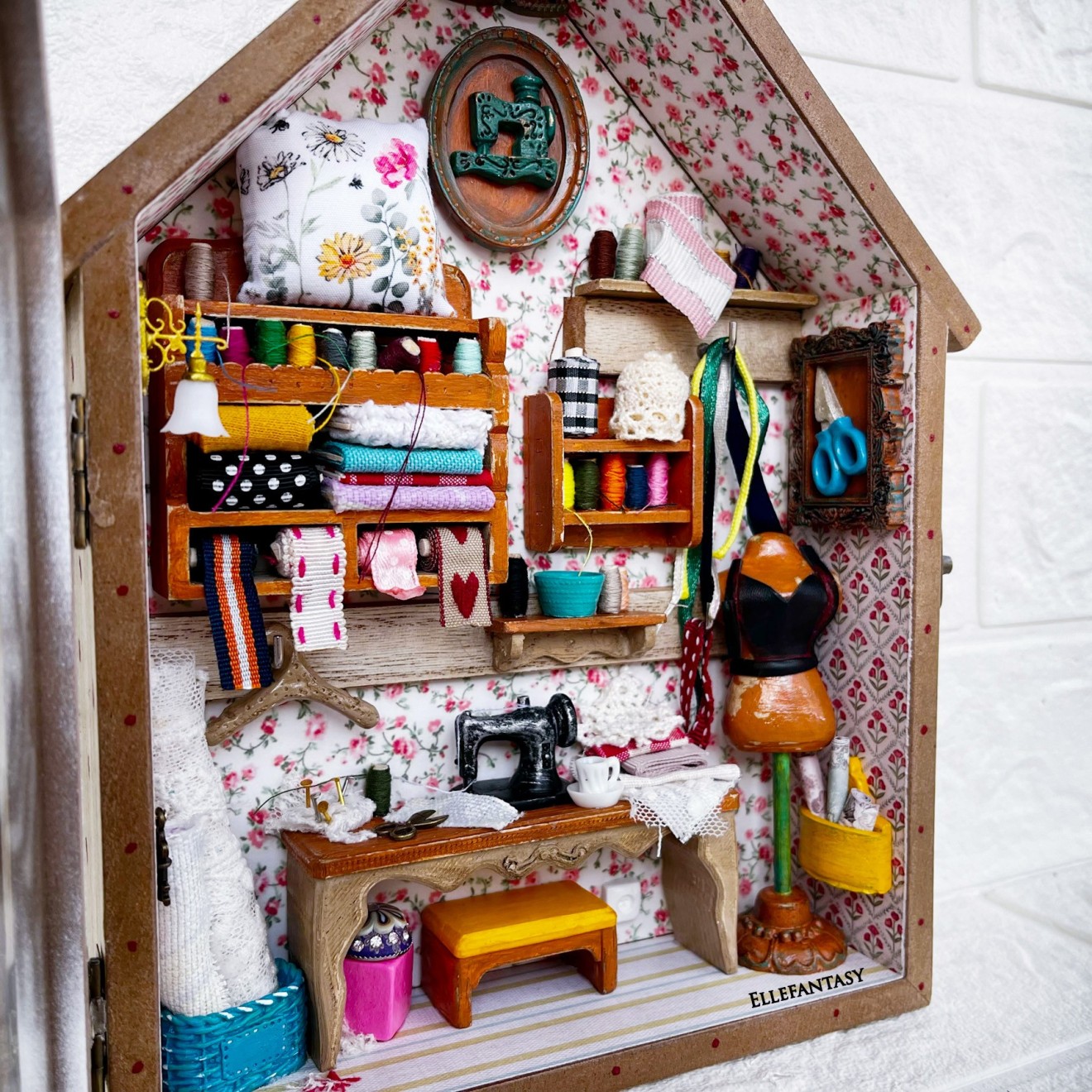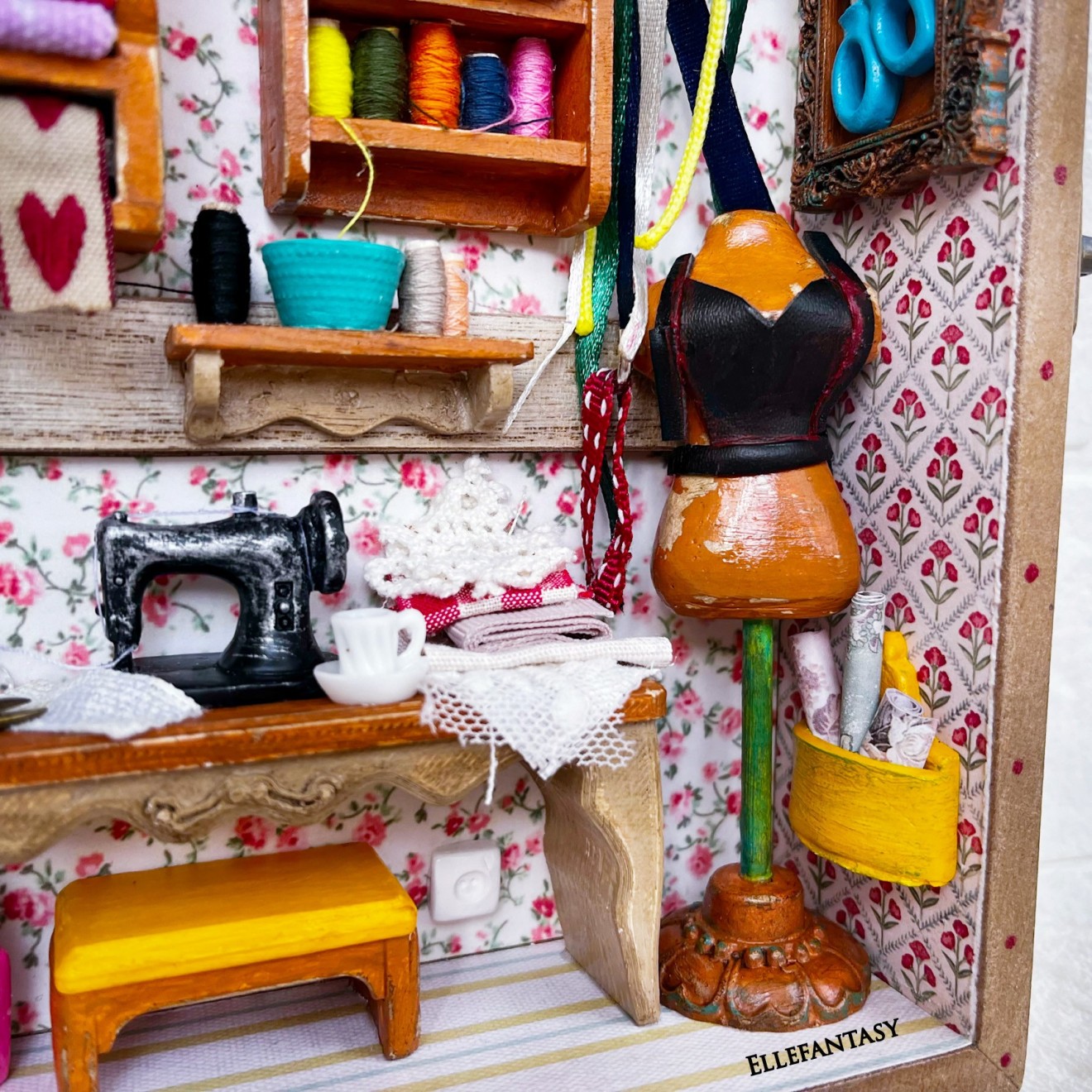 🌷 Налична 🌷 Третата кутия и стаята, която видях в нея. ❤️Кътчето на малката шивачка с големи мечти и пъстро сърце❤️ ❣️Цена 59€/ 115.39лв.📌Тези стаи изпращам само с Еконт до офис или личен адрес. Изработката съм направила в кутия от МДФ имитираща дърво със стъклен капак. На нея Не може да се поставят кукички. Размери 25,7/20 см. 📍 Моля запознайте се с начина ми на работа преди поръчка. Работя с капаро.