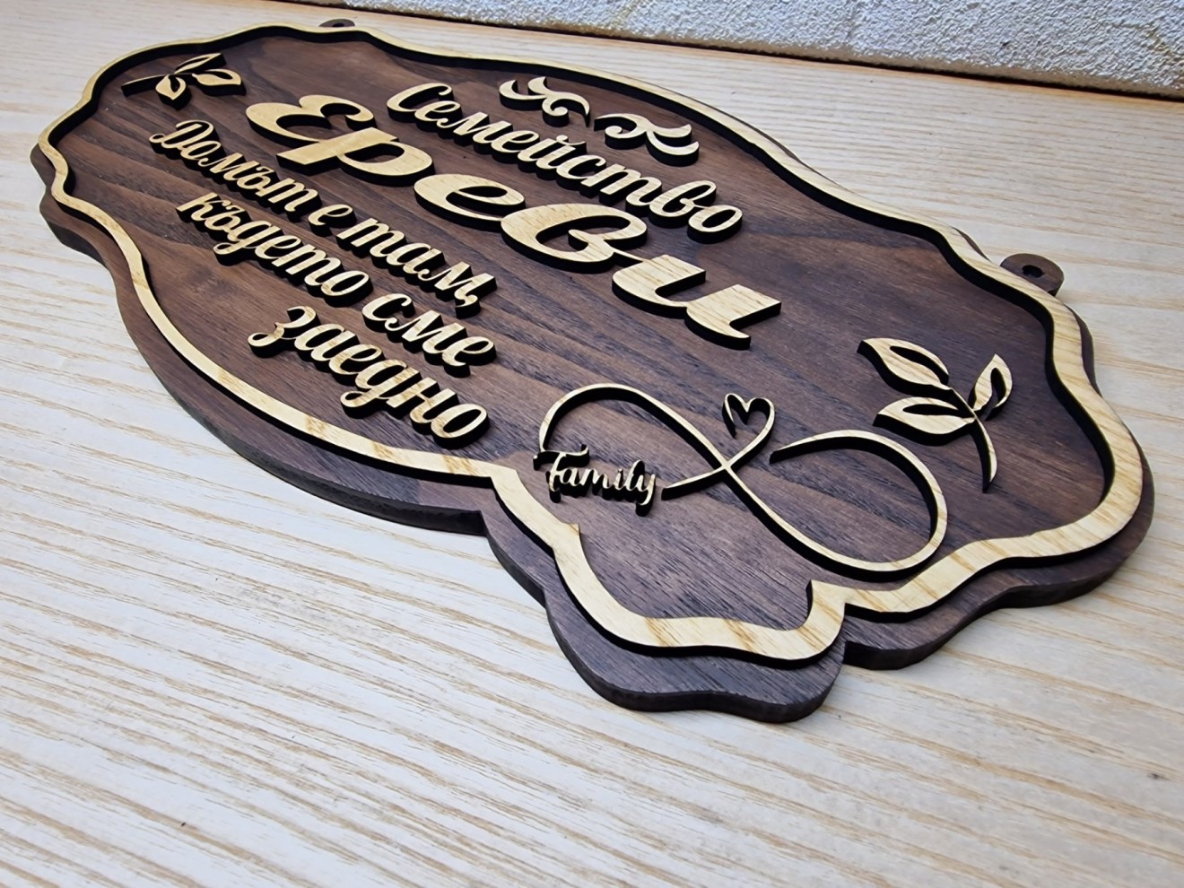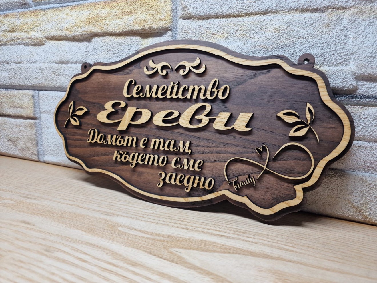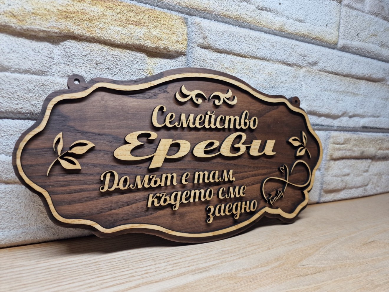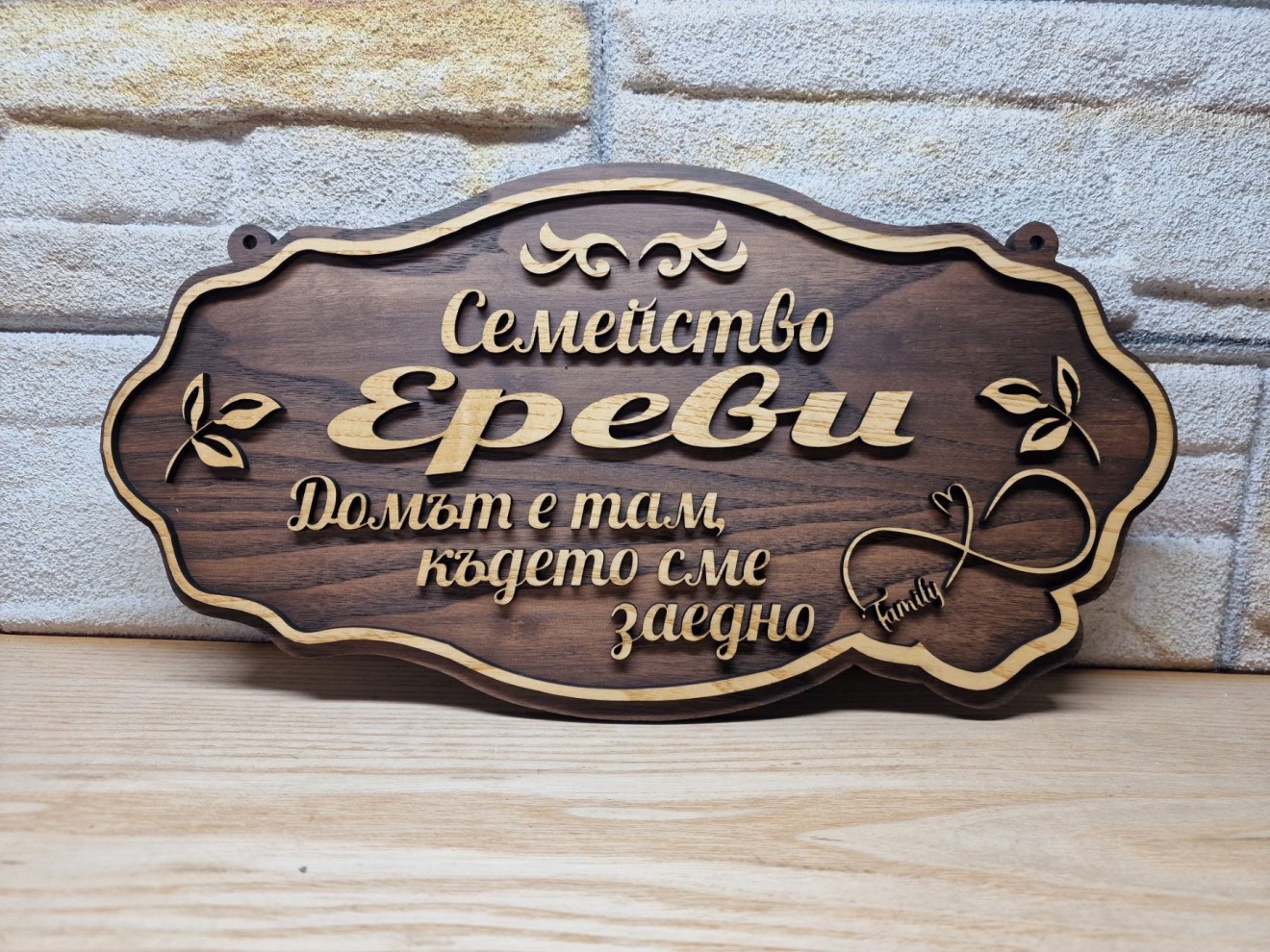 Търсите подарък за нов дом, оригинален подарък за семейство или стилна декорация за входна врата? 🪵 Нашите табели с име са ръчно изработени и създадени специално за вас 💛 Подходящи за подарък за сватба, годишнина, нов дом или просто за уют у дома ✍️ Изработваме персонализирани табели с надпис, които носят емоция и стил ✨ „Домът е там, където сме заедно“ – направете вашето място още по-специално 📦 Поръчайте персонализирана дървена табела онлайн 📩 Пишете ни за цена и изработка по поръчка 📌Размери: ▶️Дължина: 38 сантиметра ▶️Широчина: 20 сантиметра