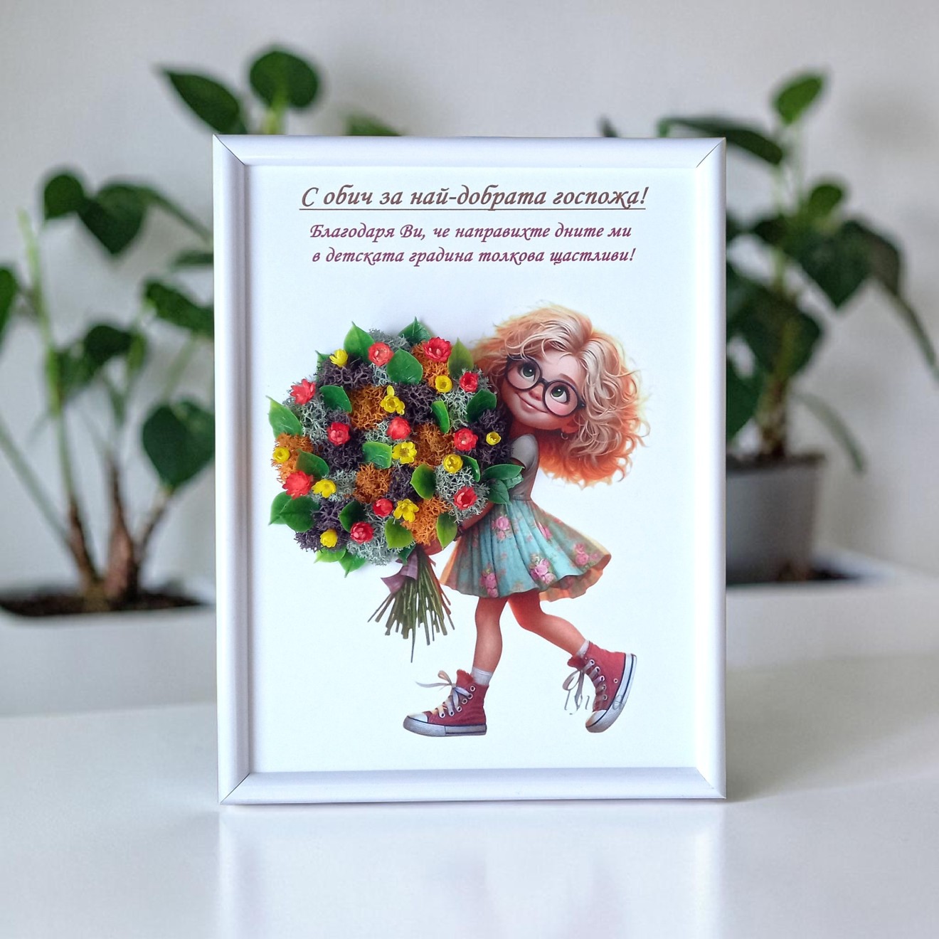 🎓✨ Завършването наближава… а с него и най-важното „БЛАГОДАРЯ“! ✨🎓 Ръчно изработени картини – идеален подарък за учителка 💝 🌿 Със скандинавски мъх и естествени стабилизирани цветя 💌 Възможност за надпис по желание 🎁 Подарък със смисъл и емоция, който остава завинаги Размери на картината от снимката 22/17 см. Може да се изработи и на по-голям размер по желание.