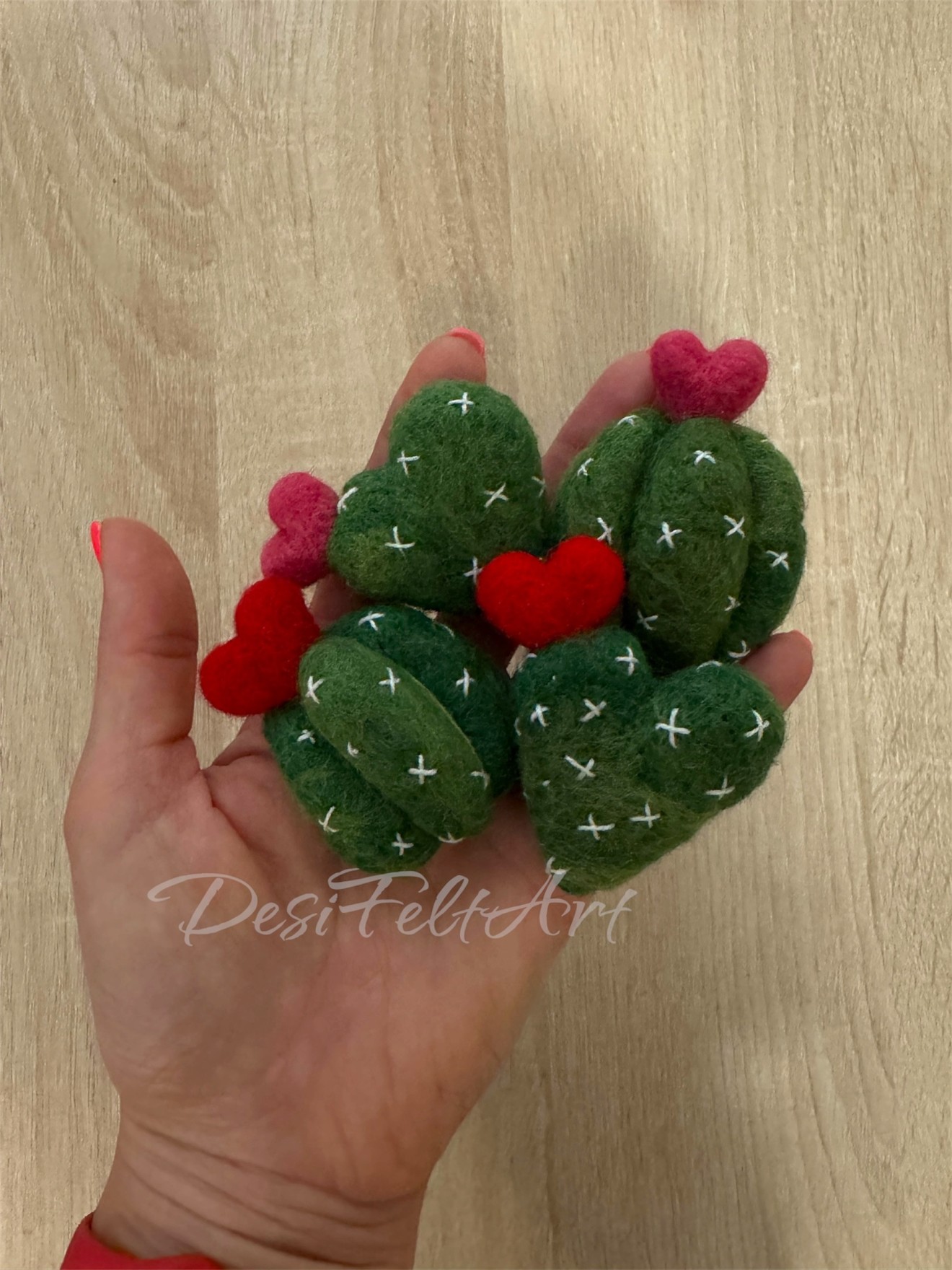 "Не е нужно да си перфектен, за да бъдеш невероятен..." Малки, бодливи, несъвършенни.... и точно затова толкова истински - Кактуси Ръчно изработени брошки от вълна, чрез техника иглонавиване (сухо плъстене). Размери - около 5 - 7см (в най - широката част) Цената е за 1 брой