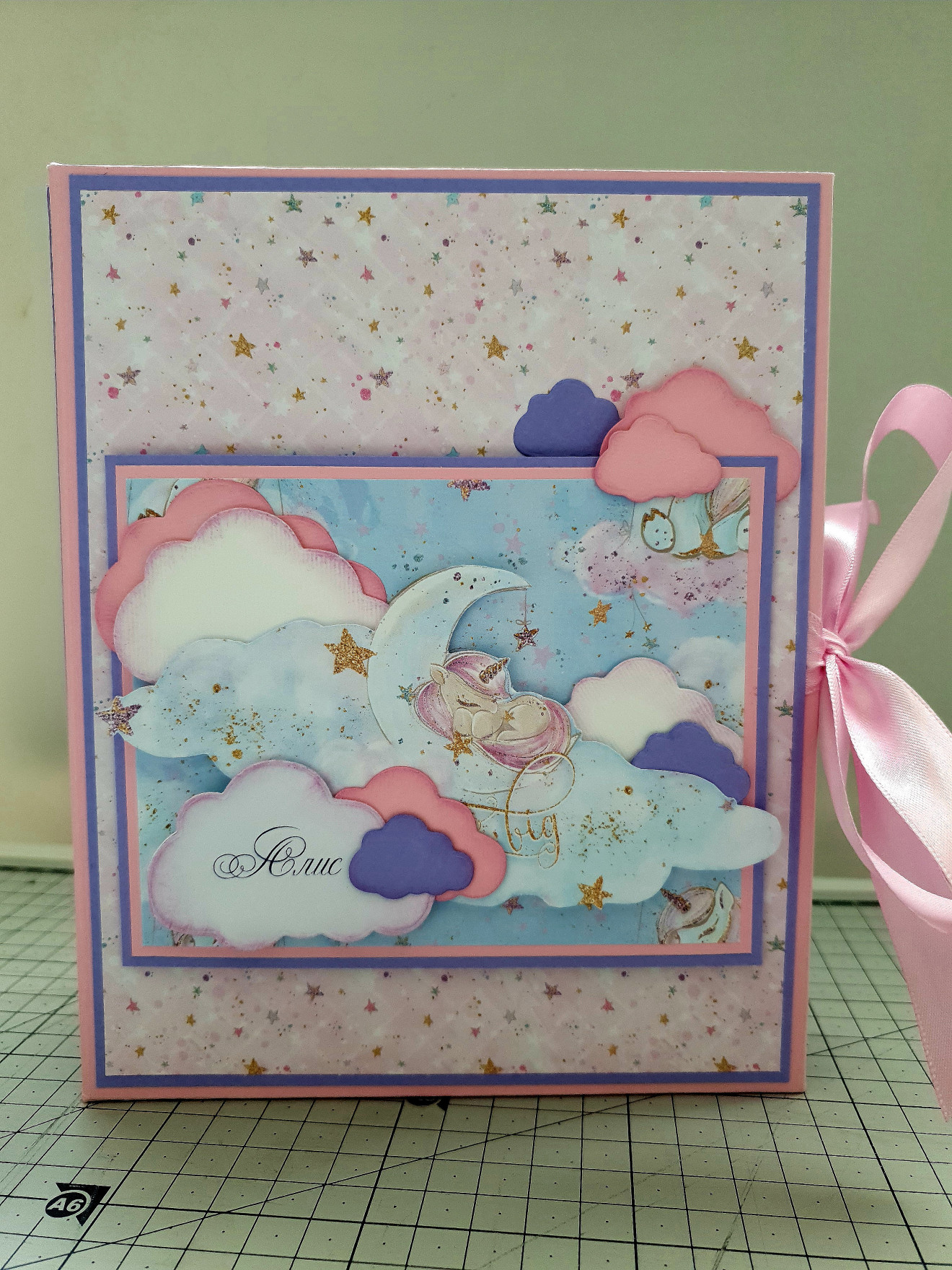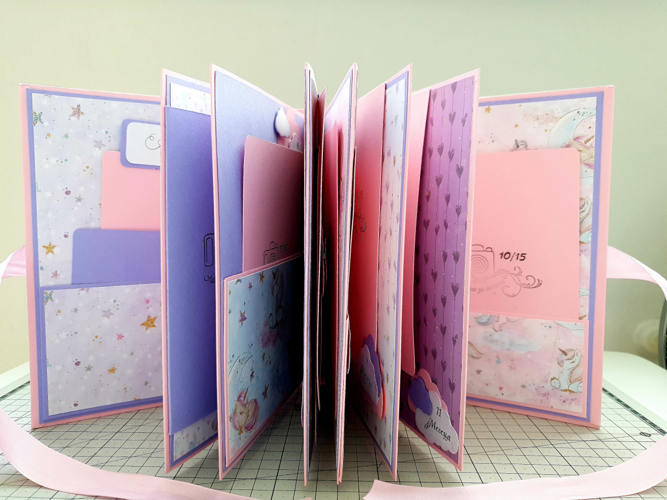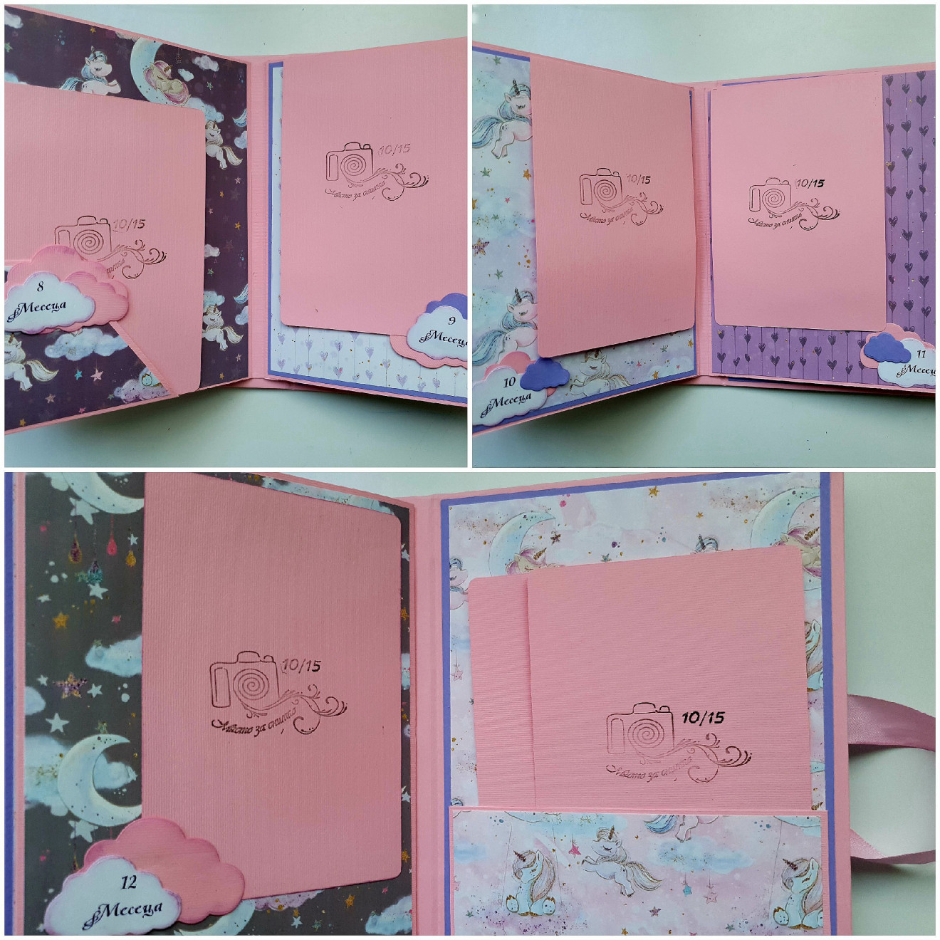 Малко албумче, в нежно розово, лилаво и малки сладки еднорози! Албумчето е с размери в затворен вид 16/21см. Съдържа 12бр странички и събира в себе си 40бр снимки с размер 10/15см. Правя всяко албумче от нулата с много желание и любов!