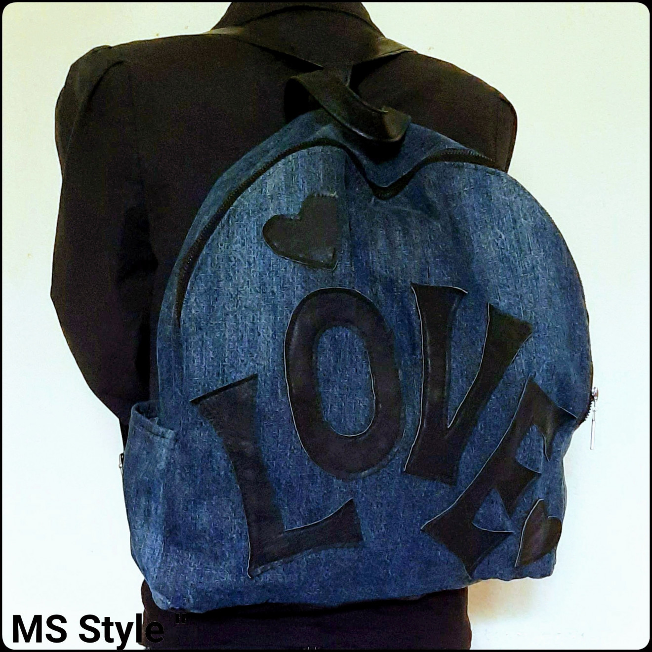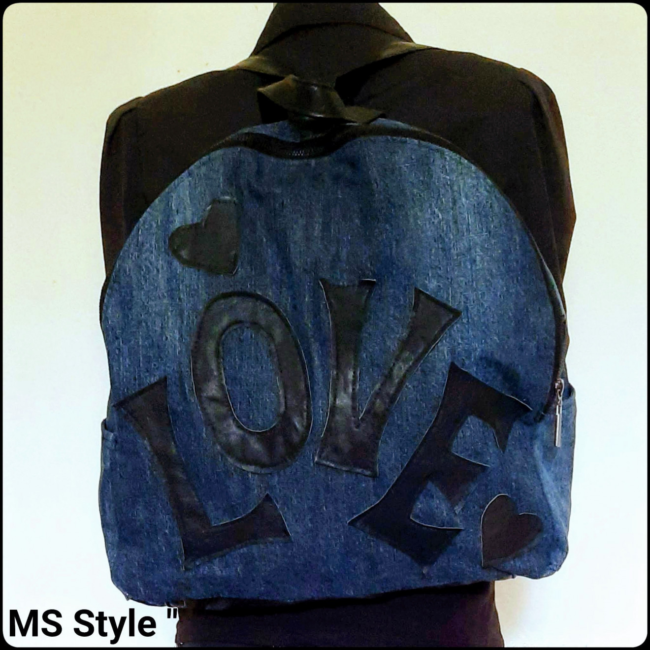 Атрактивна #дамска #раница от #деним и #естествена #кожа! Практична и удобна раницата е изработена от мек #дънков #плат, #декорирана с #надпис от естествена кожа, #дъно от #естествена #кожа, с дъно от #естествена #кожа, с едно отделение закопчава се с цип, с #два #външни #джоба отстрани и #голям #вътрешен #джоб - #преграда.
