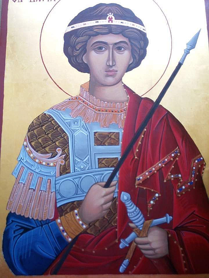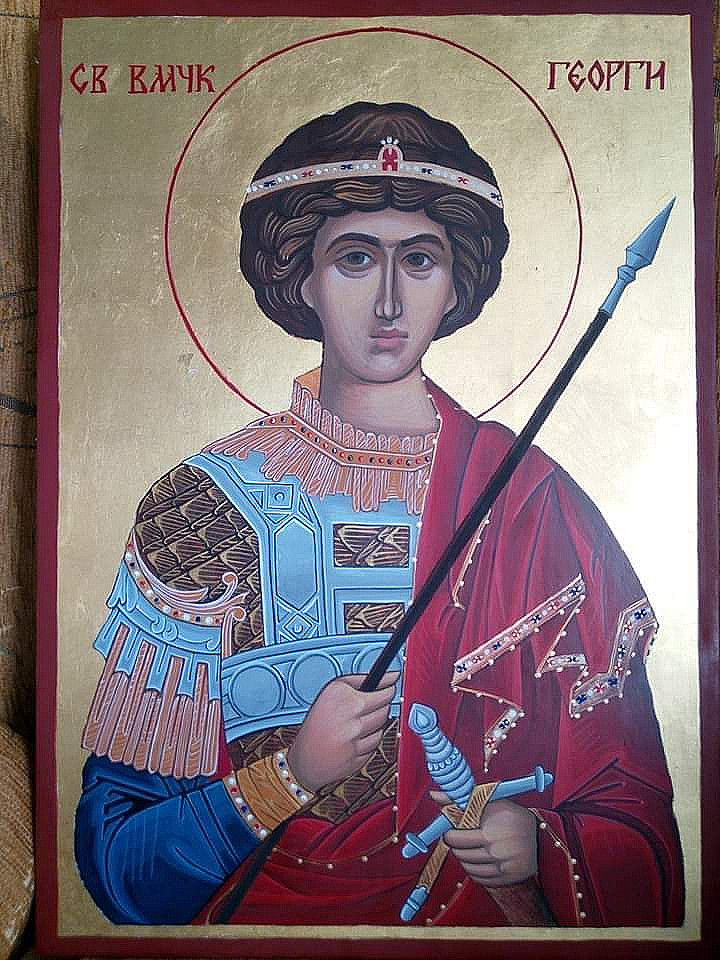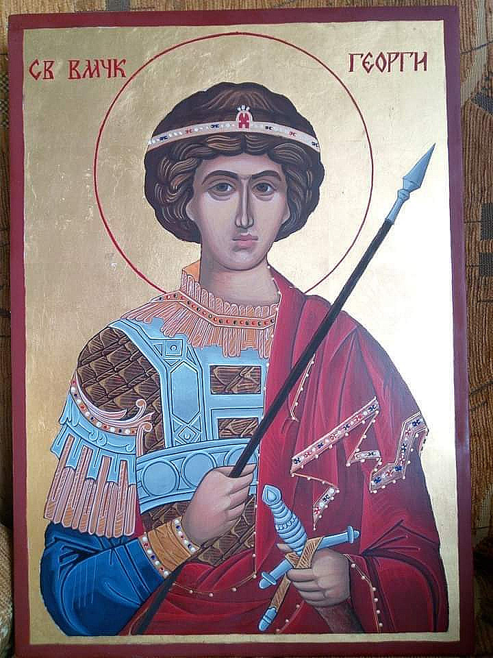 Ръчно рисувана икона "Св. Вмчк Георги" Размери 42/30 см Изработката е дървена основа с платно , яйчна темпера и 23к позлата .