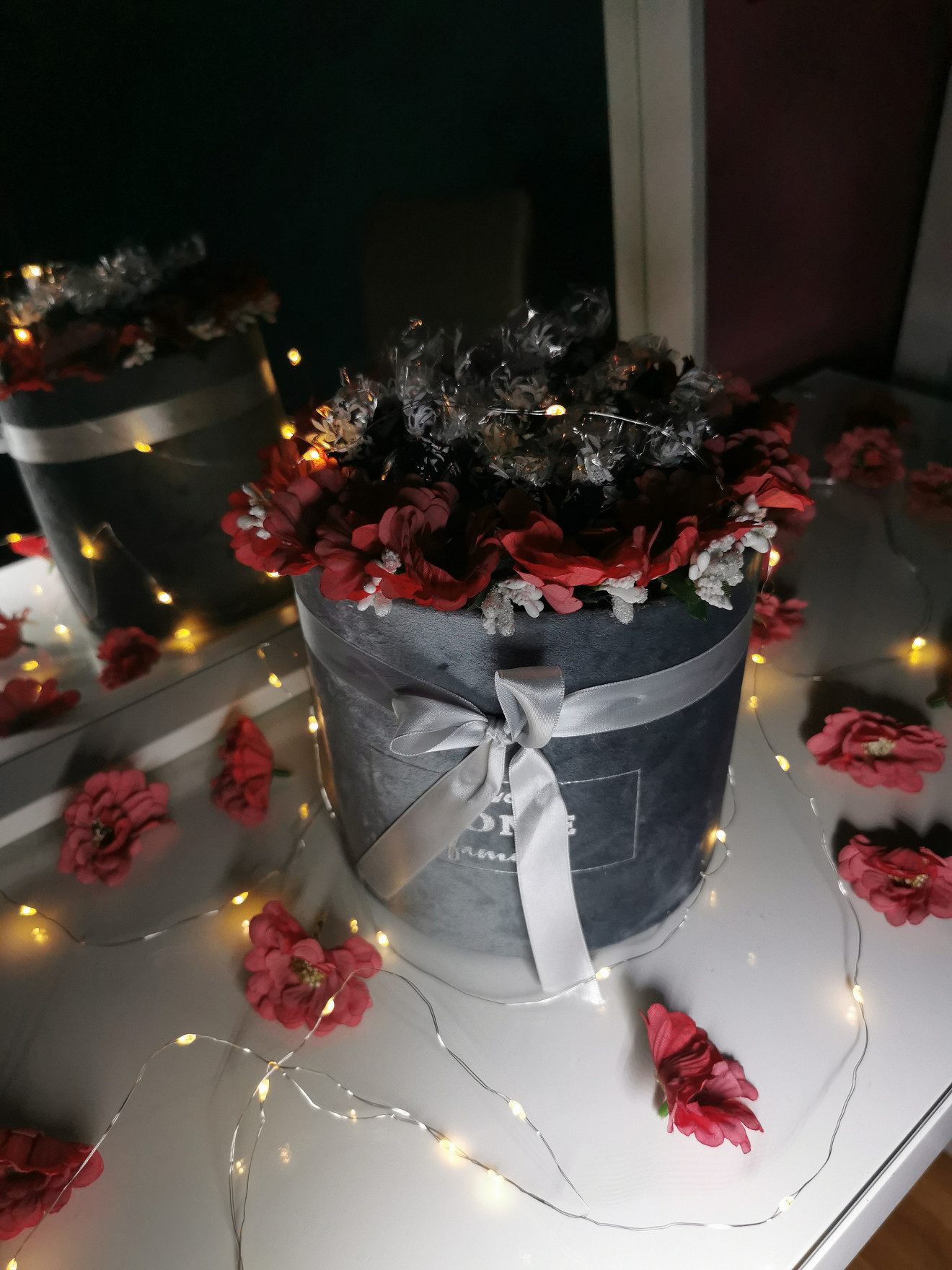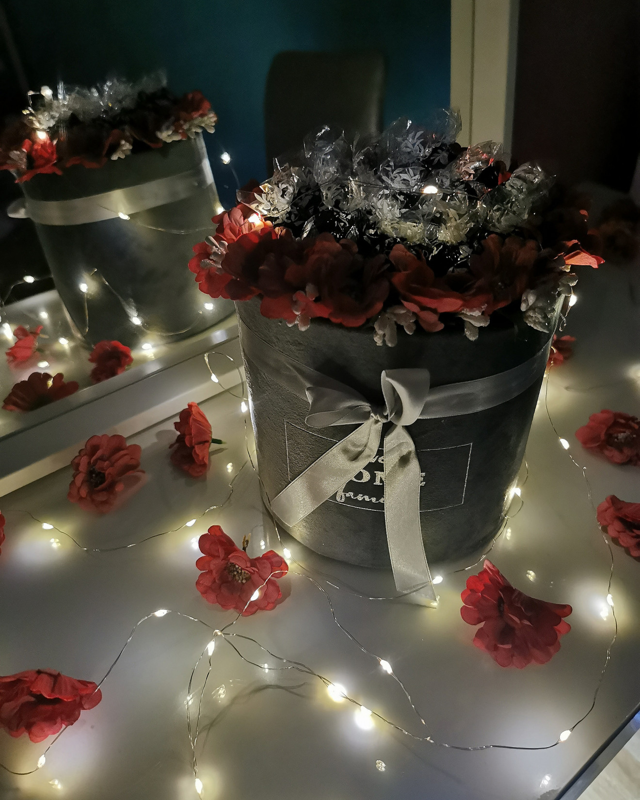 Подаръчна кутия с бонбони линдор и декорация с красиви цветя