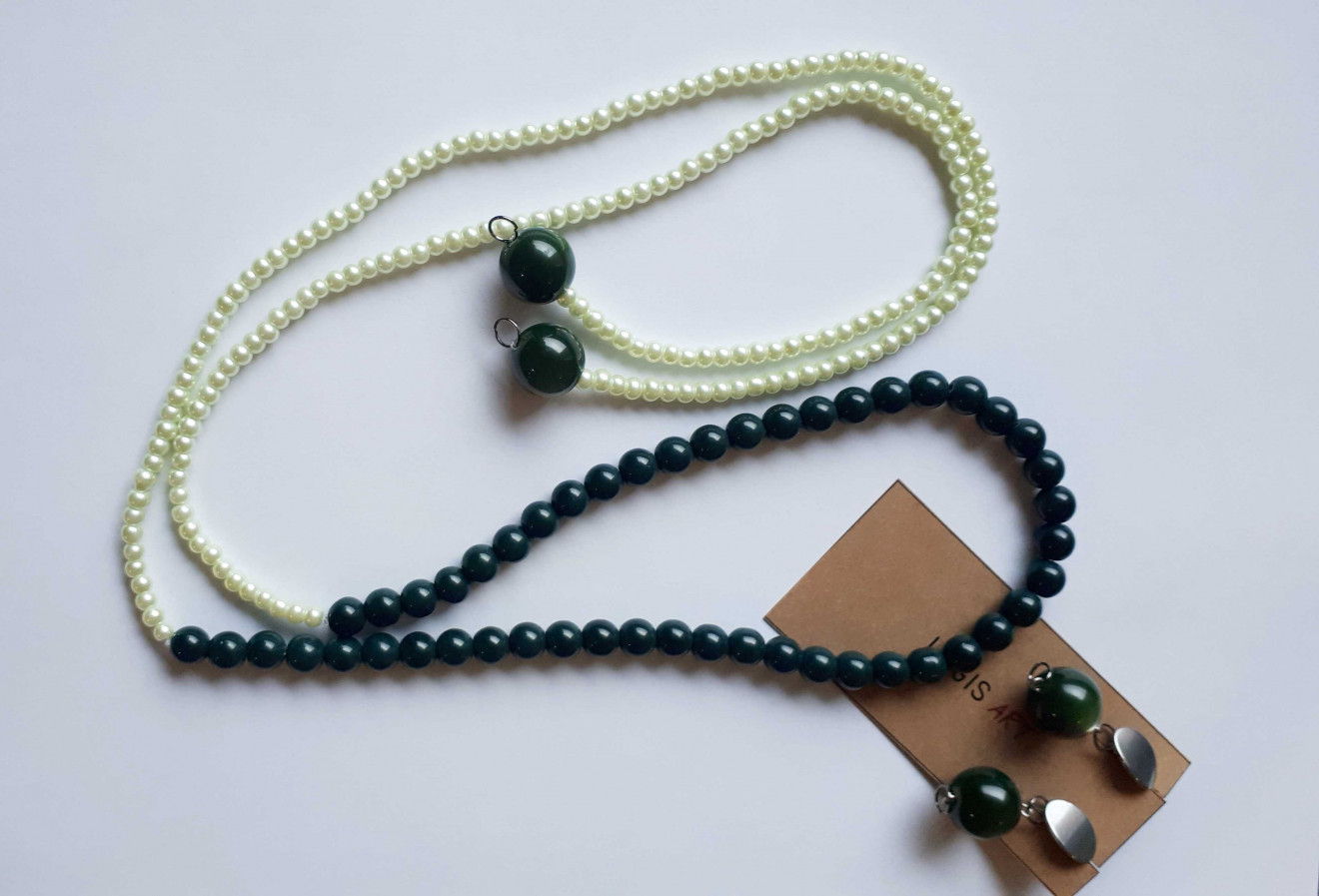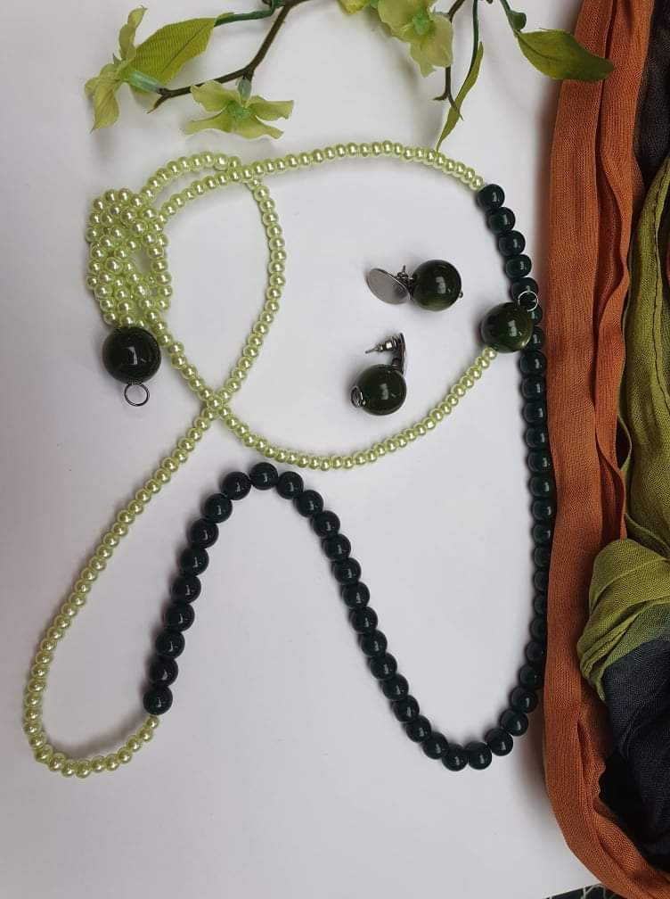 LAGIS ART NE-15-Olive set #колие#обеци#мъниста#стъклена#стомана#