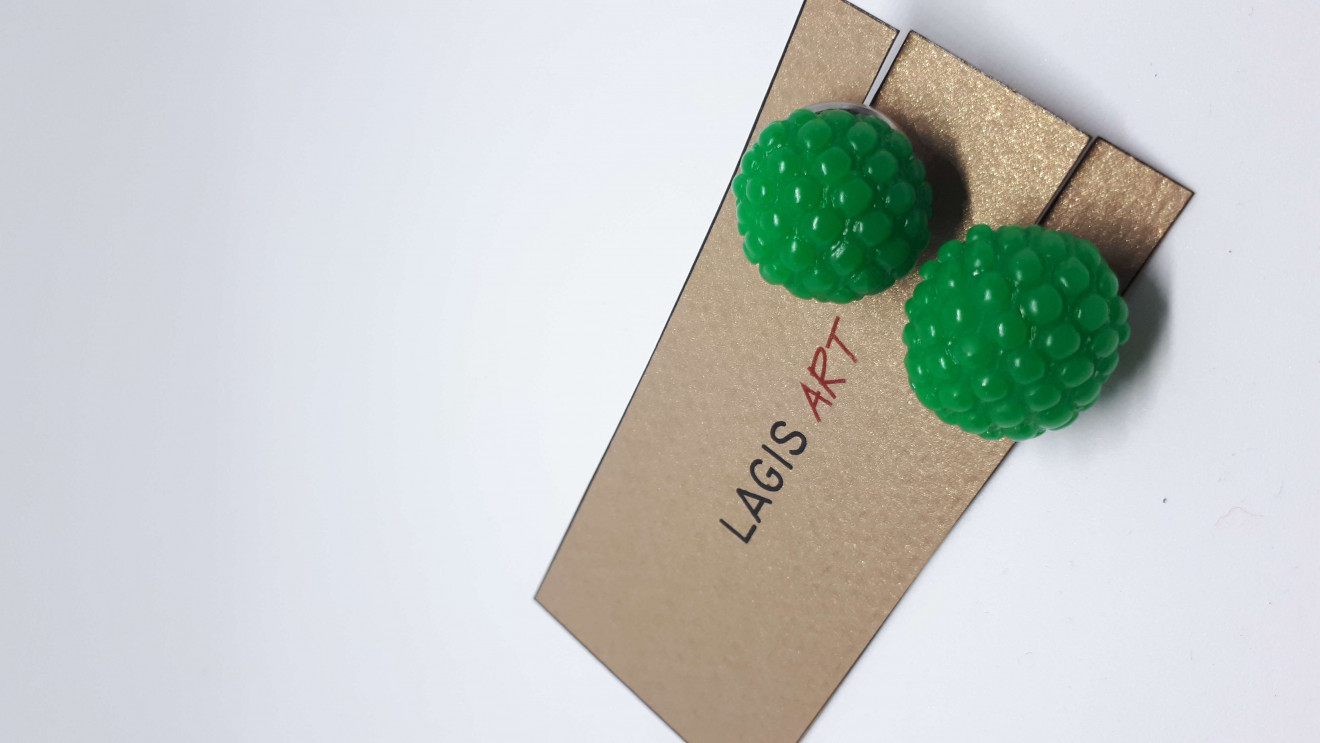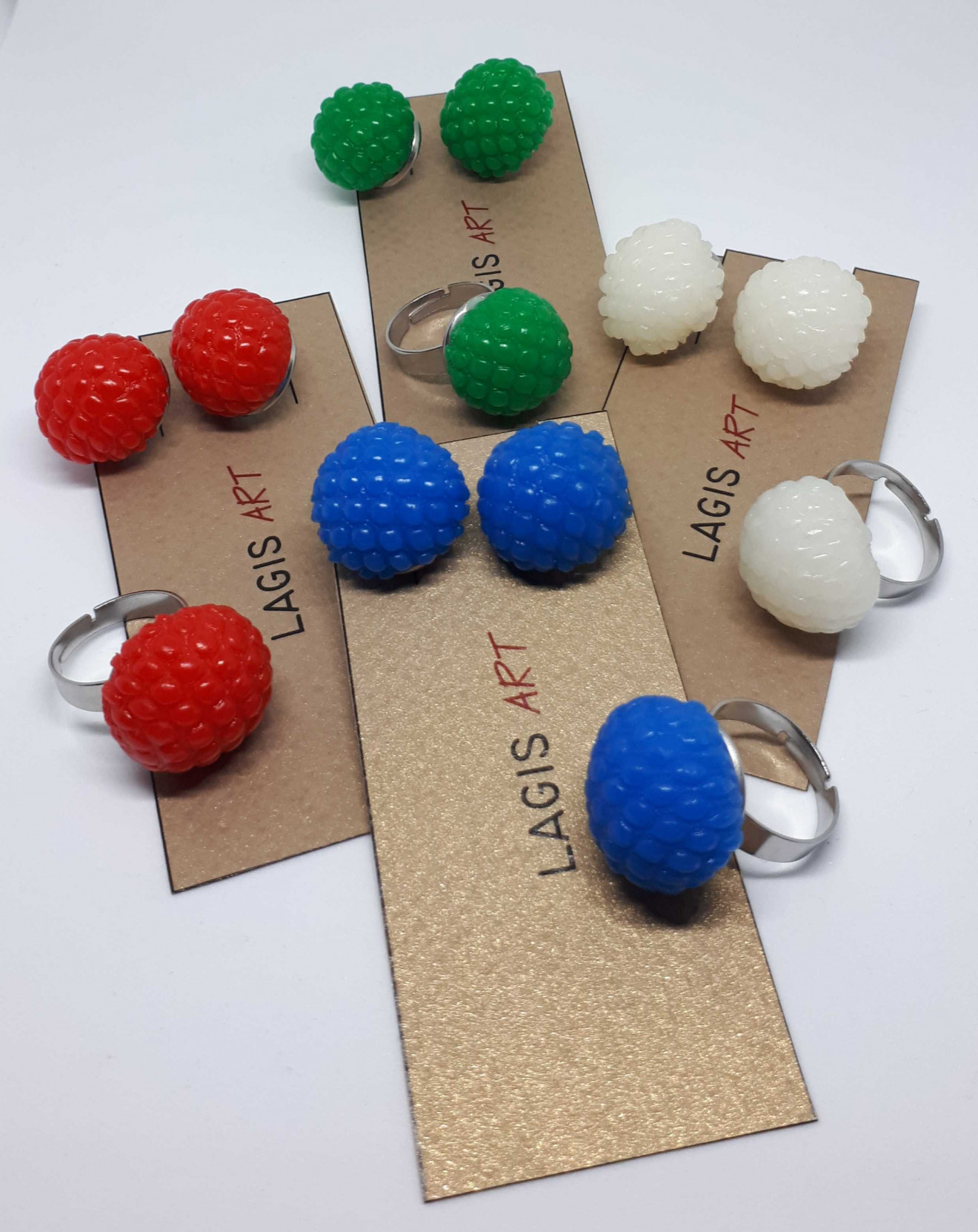 LAGIS ART #Обеци# Raspberry- White,Green,Red,Blue #стомана#глина#цветове#винт#