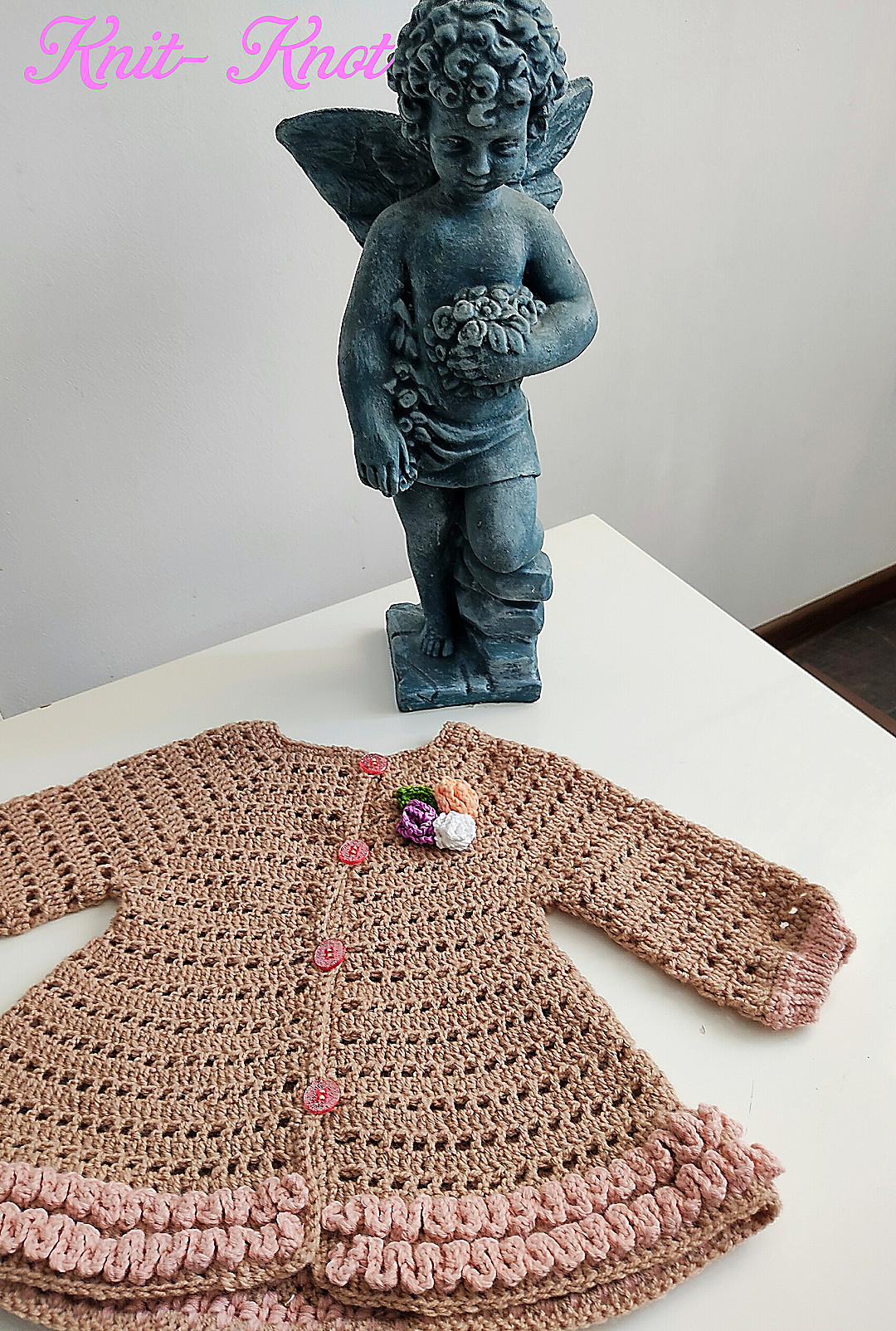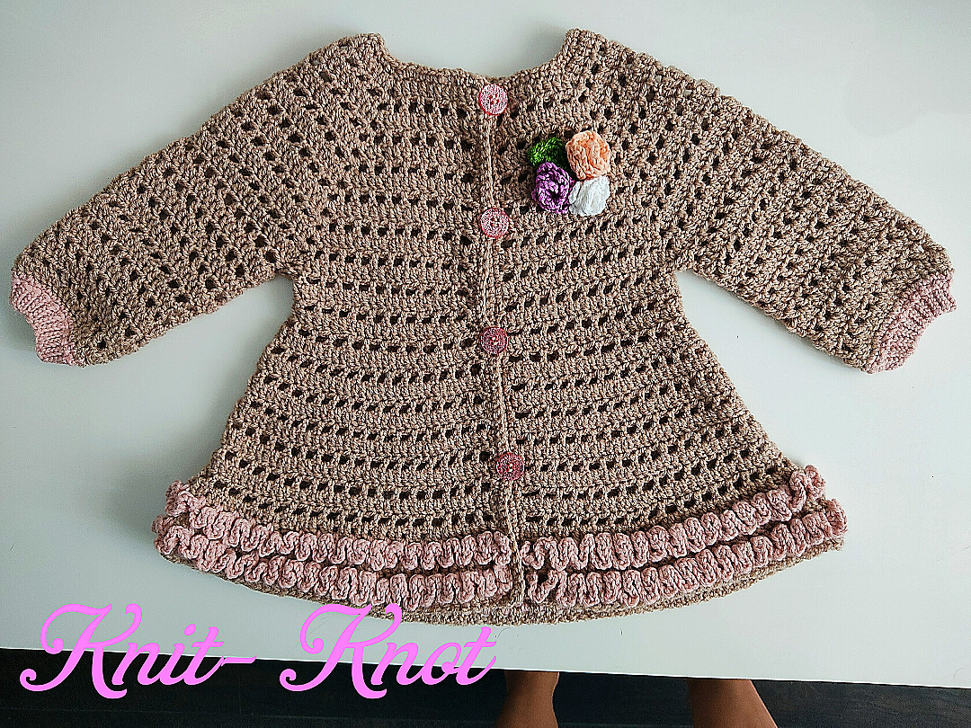 Жилетка за момиченце-1 год изплетена от мека бебешка прежда в бежов цвят.