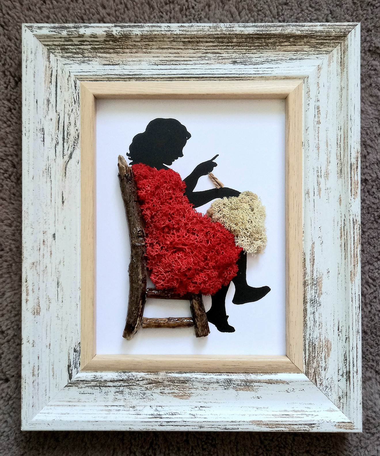 Пано "Шивачка" със скандинавски мъх. Настолна/стенна рамка с размери 29/24 см.