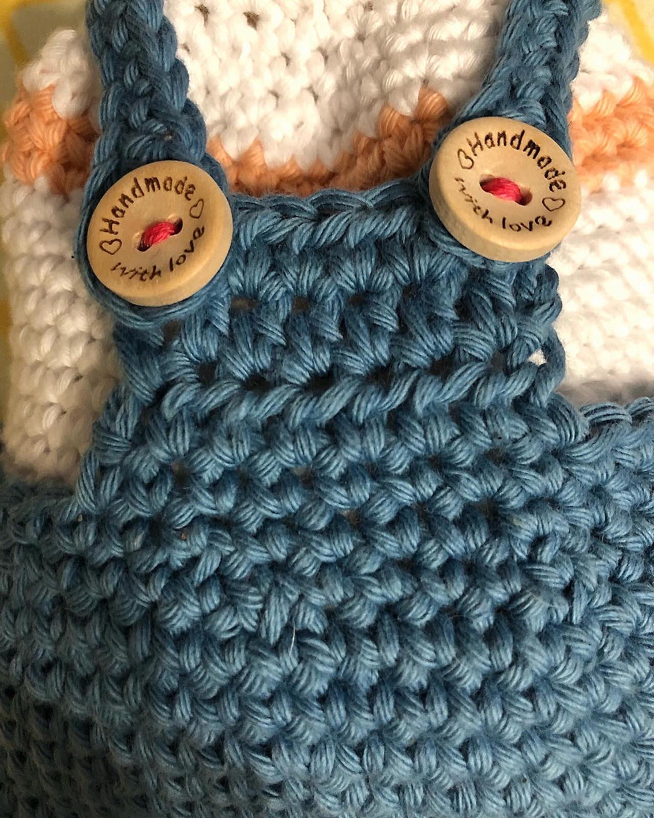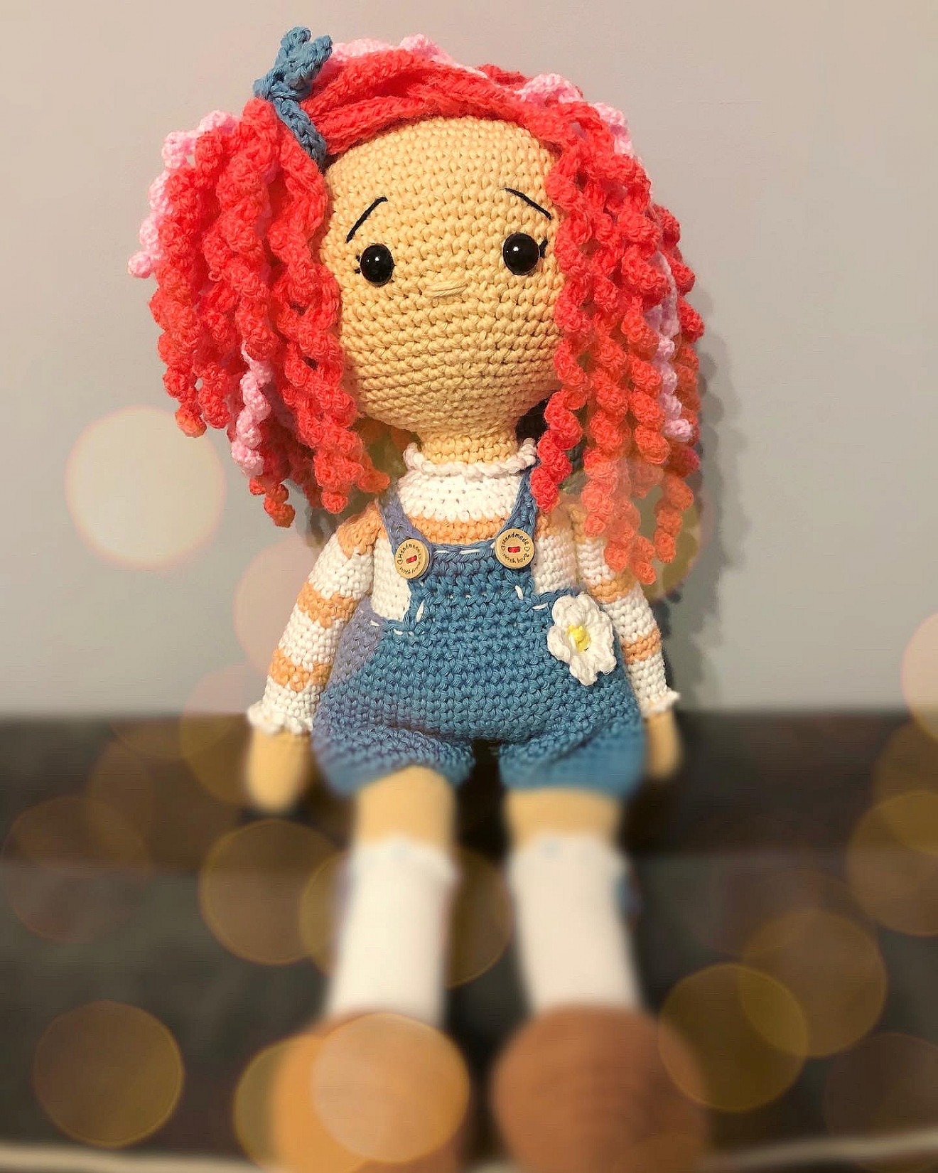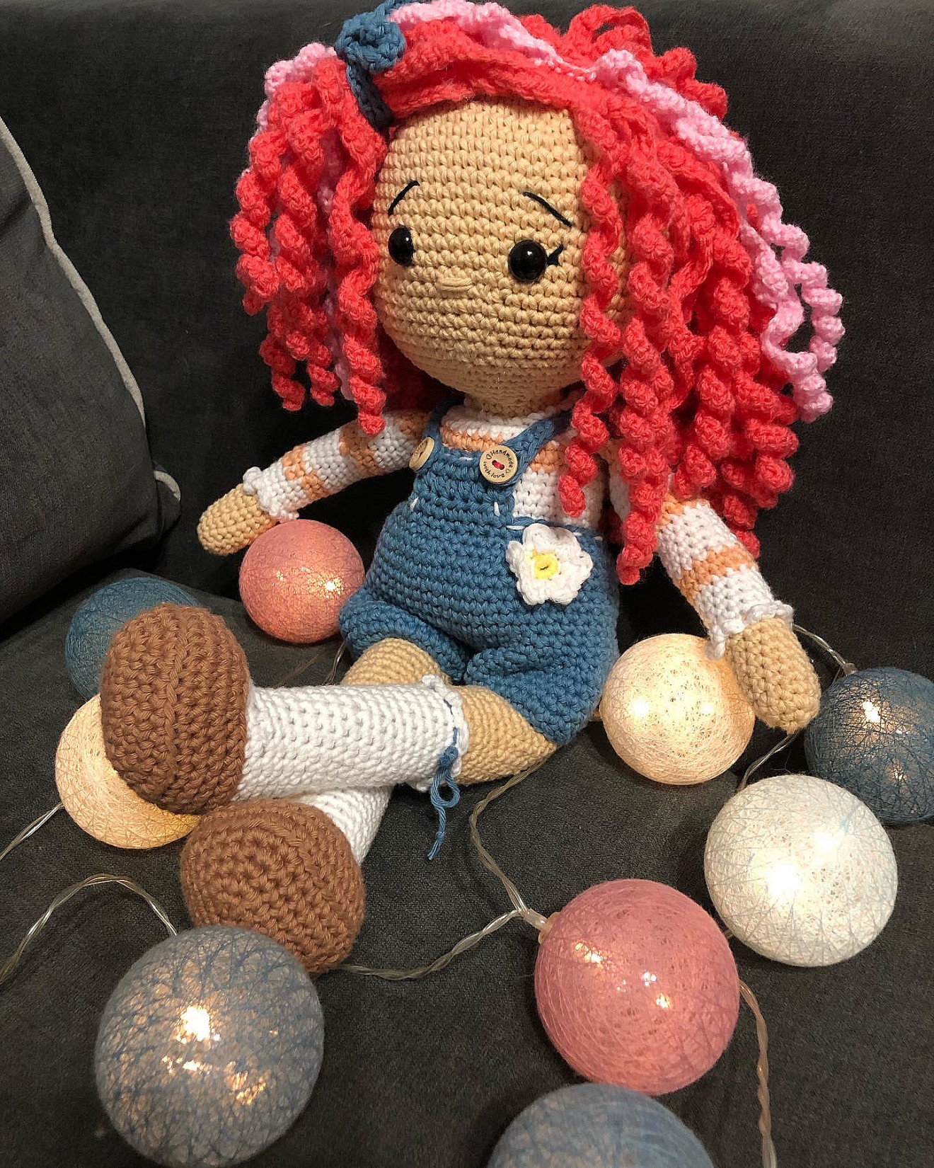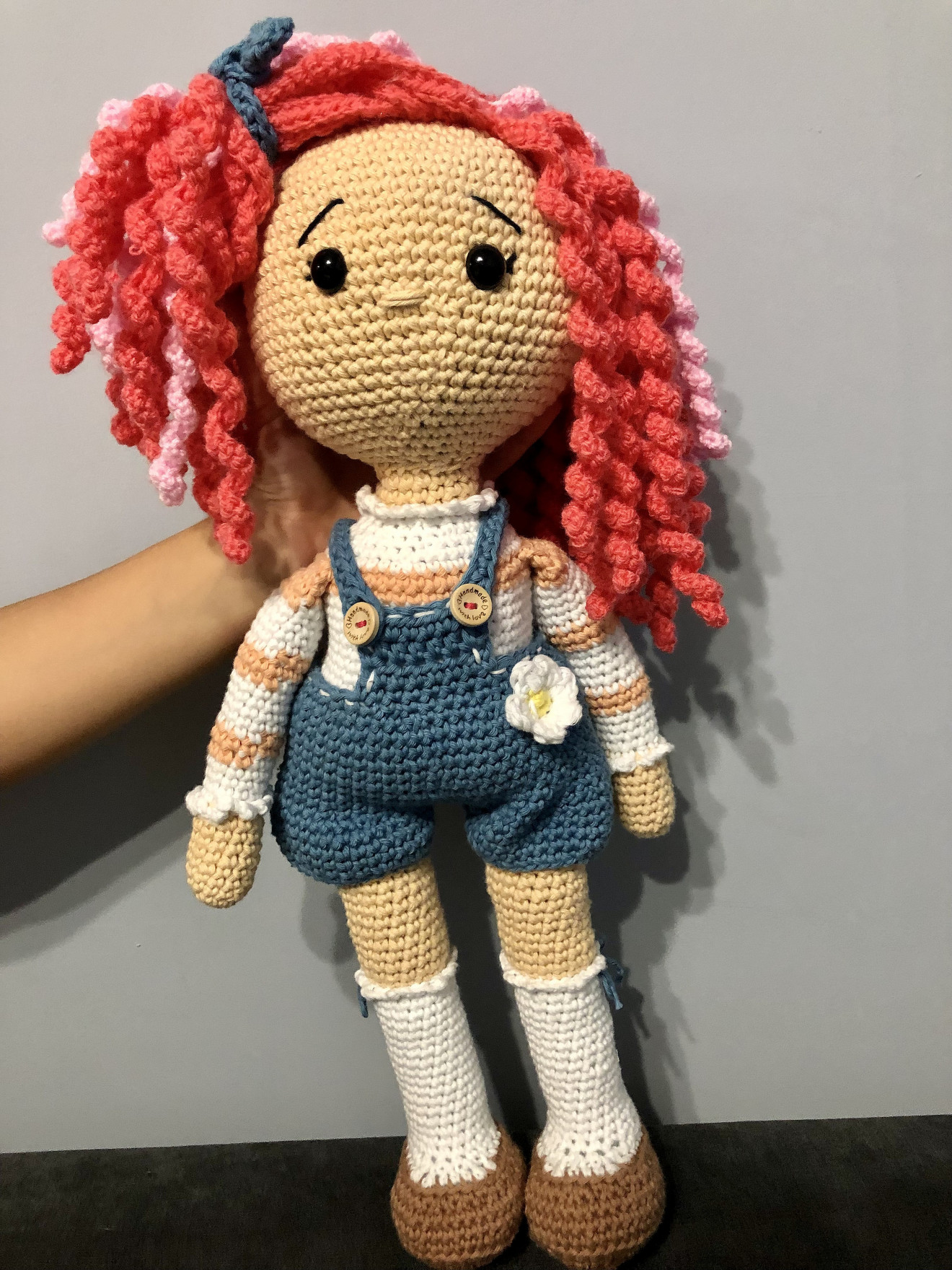 Ръчно плетена кукла. Височина 45 см. Изработена от памучна прежда , пълнежът е силиконов пух , подходящ за плюшени играчки.