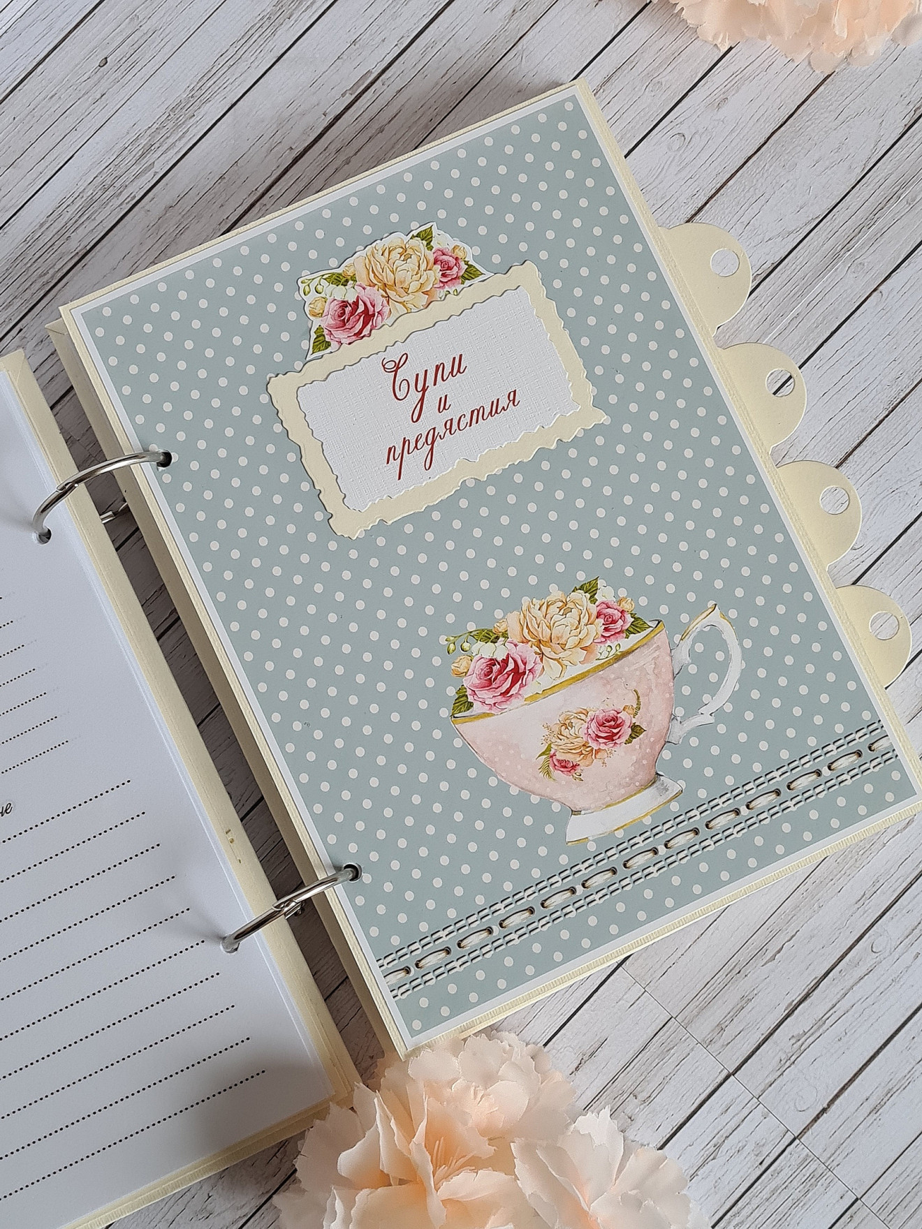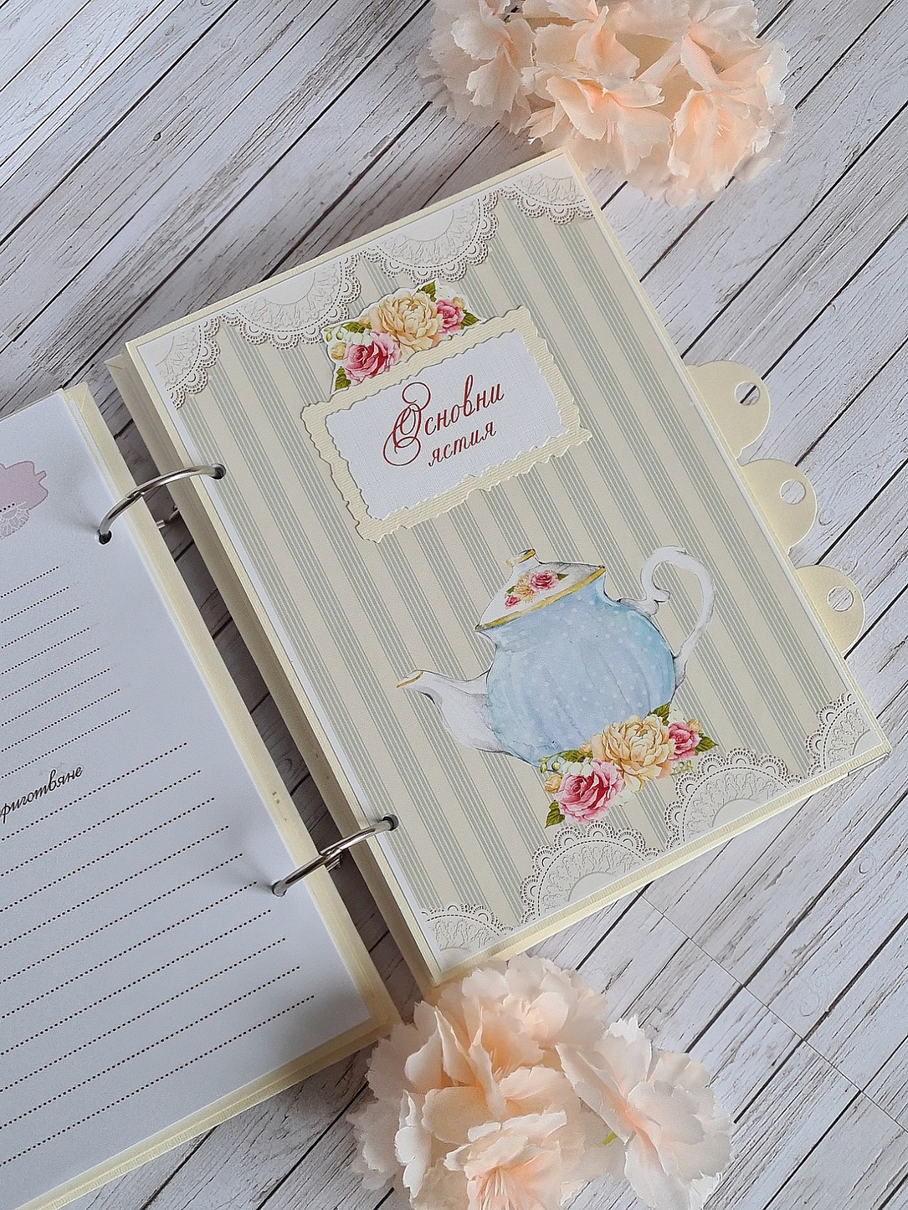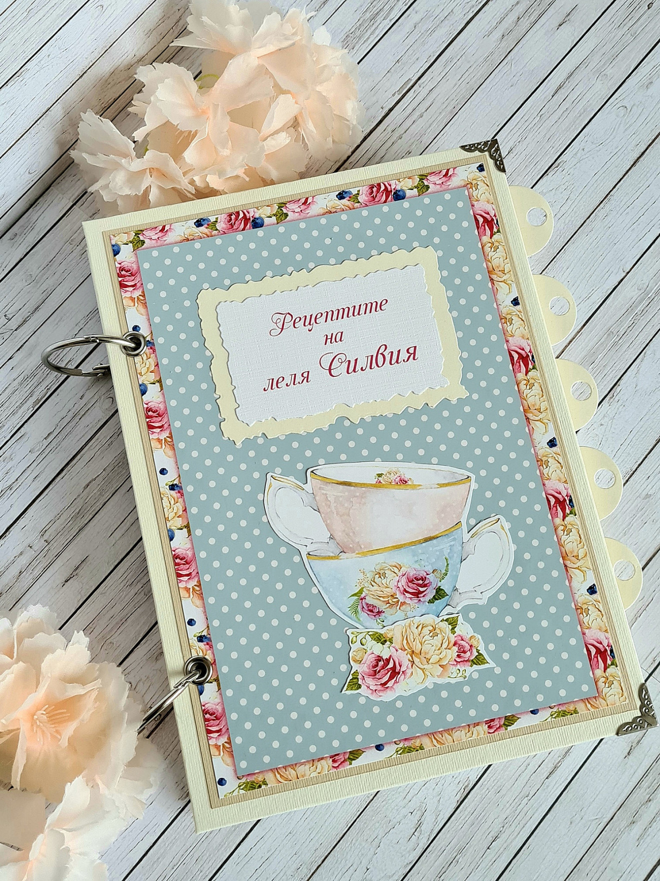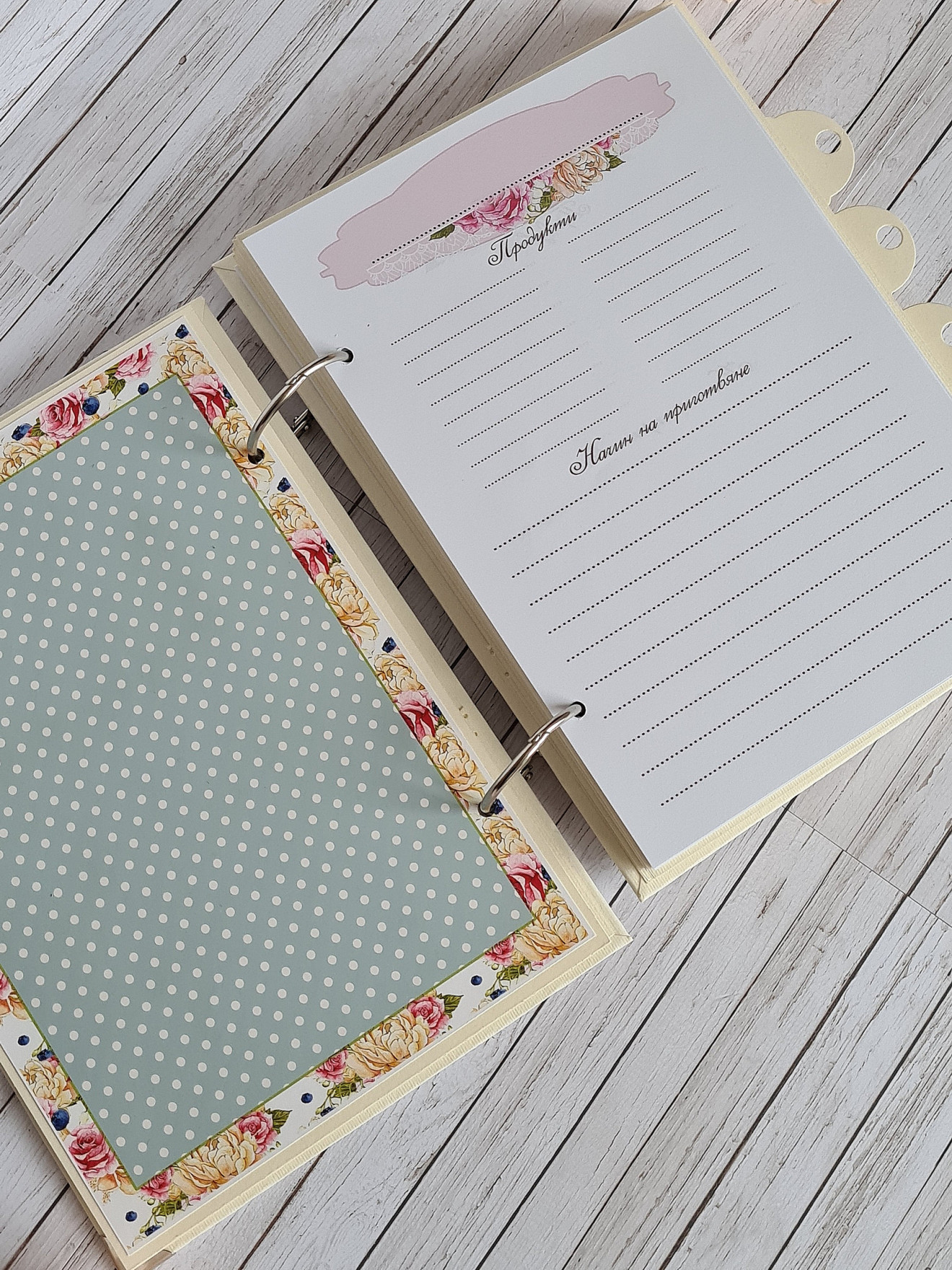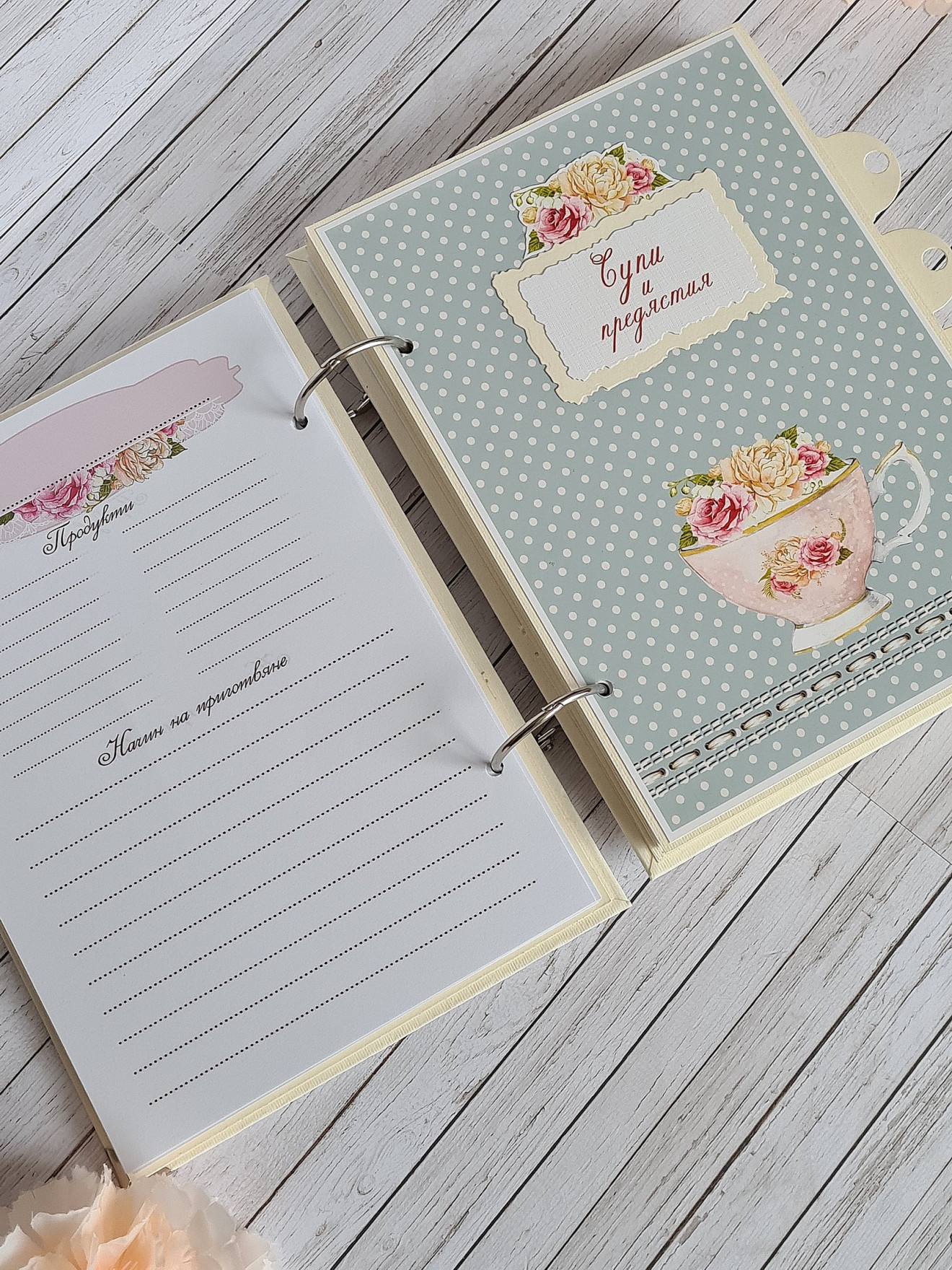 Рецептурник, тефтер за рецепти. Размер А5- 15/21см Рецептурникът е с 5 раздела. Съдържа 100 листа, двустранно принтирани за общо 200 рецепти. Кориците са изработени с джобове от вътрешната им страна за " специални и ценни" рецепти. Срок за изпълнение- 6-8 работни дни. Може да бъде изработен подобен в цветове и декорация по ваше желание! https://www.facebook.com/Crafty.Treasures.Studio #craftytreasuresstudio #ръчноизработен #записки #книга #рецептурник #рецепти #тефтер #Коледа #Подарък