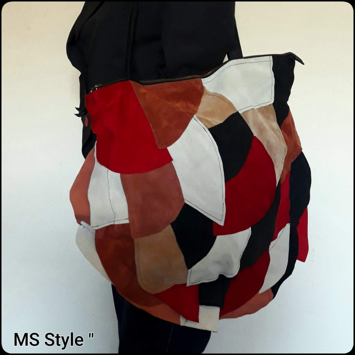 Асиметрична дамска чанта от естестве...